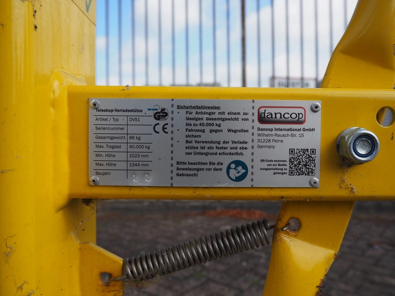 Dancop International GmbH mobile telescopic trailer stand, type: DVS1, year of construction: 2023, weight: 56 kg, maximum capacity: 40.000 kg, dimensions: 750 mm x 750 mm x 1350 mm.