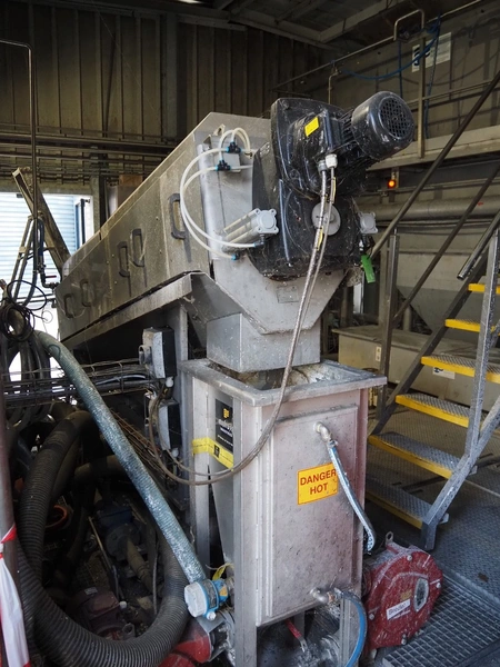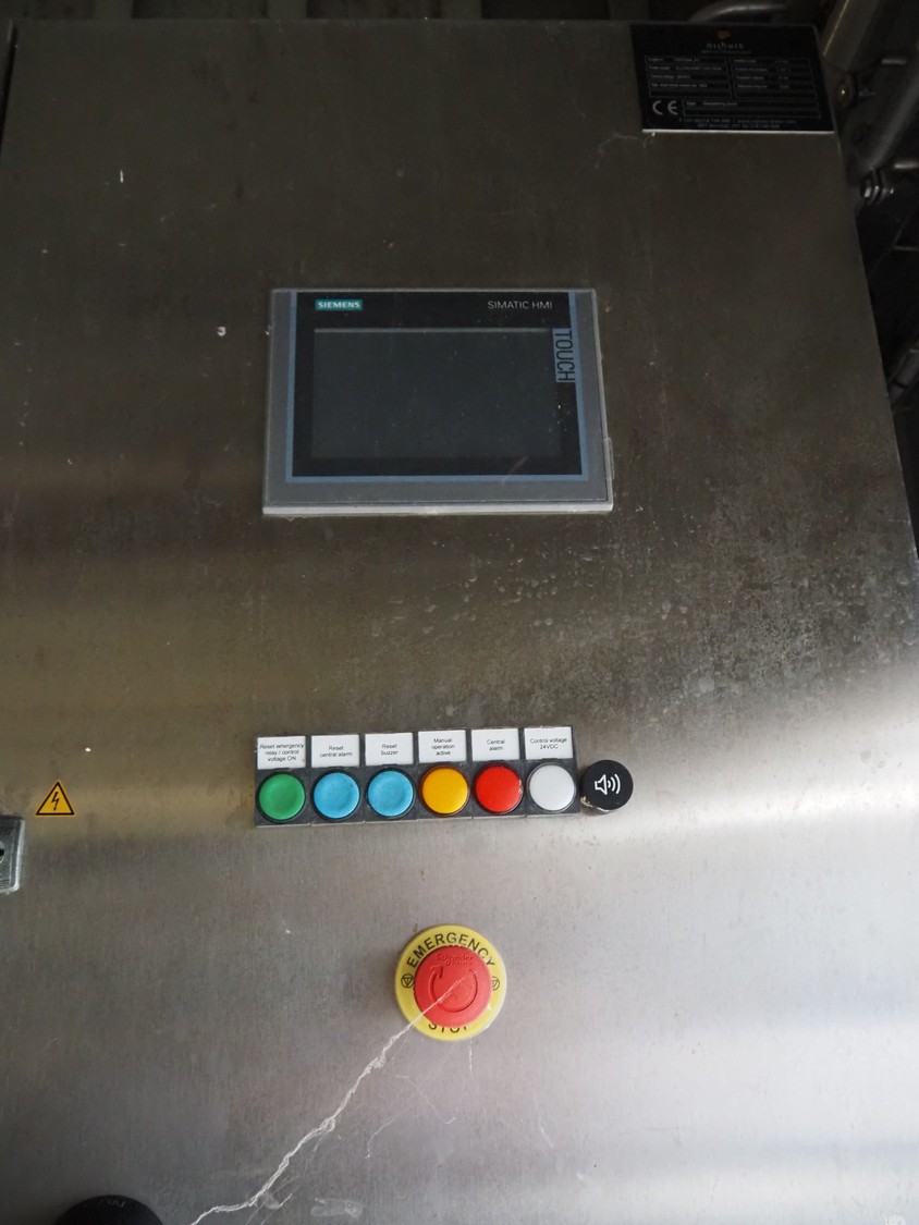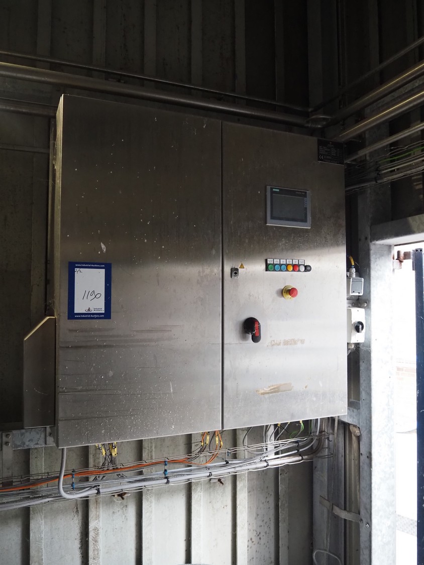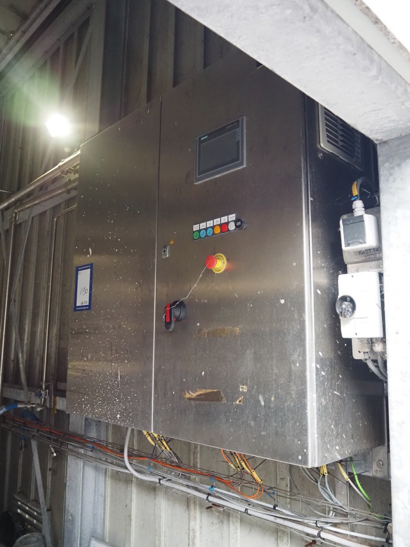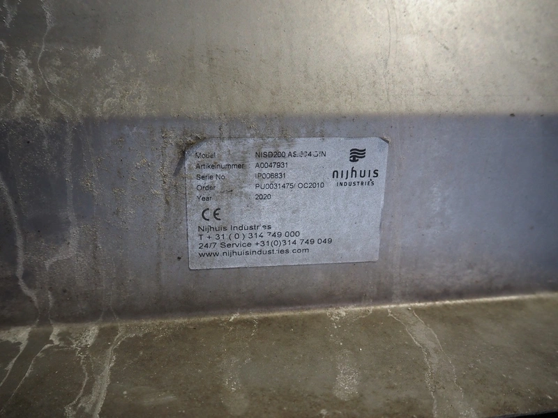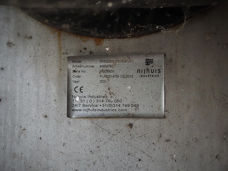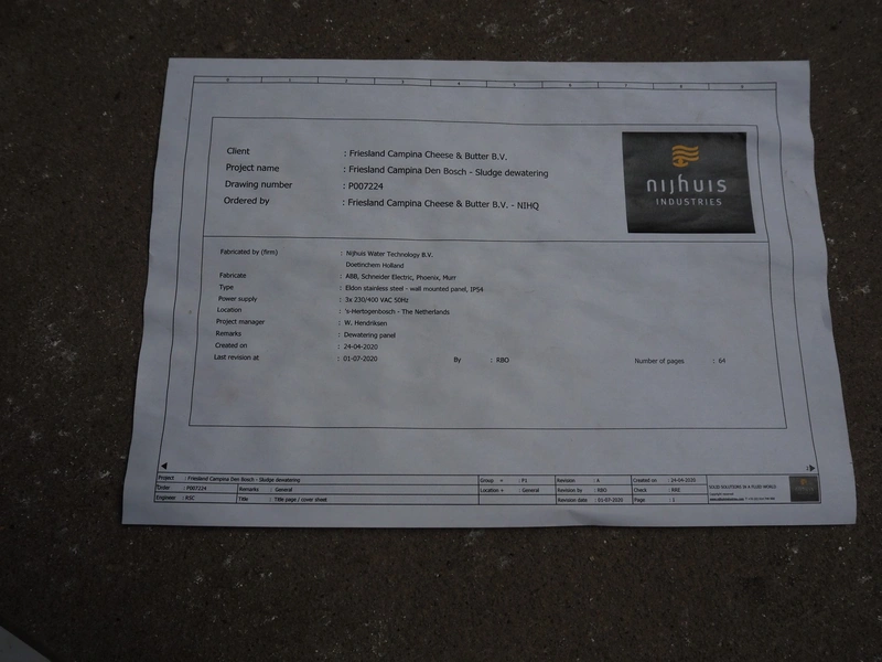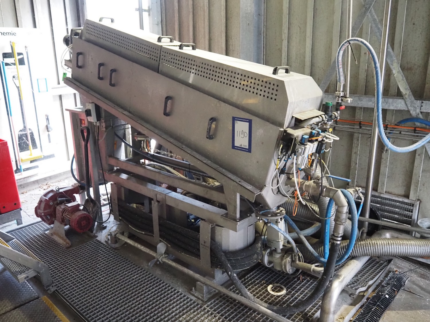 Nijhuis sludge dewatering screw press, model: NISD200, serial number: IP006831, year of construction: 2020, 230/400 V, 3 Ph, 50 Hz, 5 kW, dimensions: 3100 mm x 1300 mm x 2300 mm. S/s switch cabinet, dimensions: 1300 mm x 400 mm x 1200 mm.