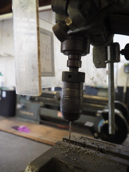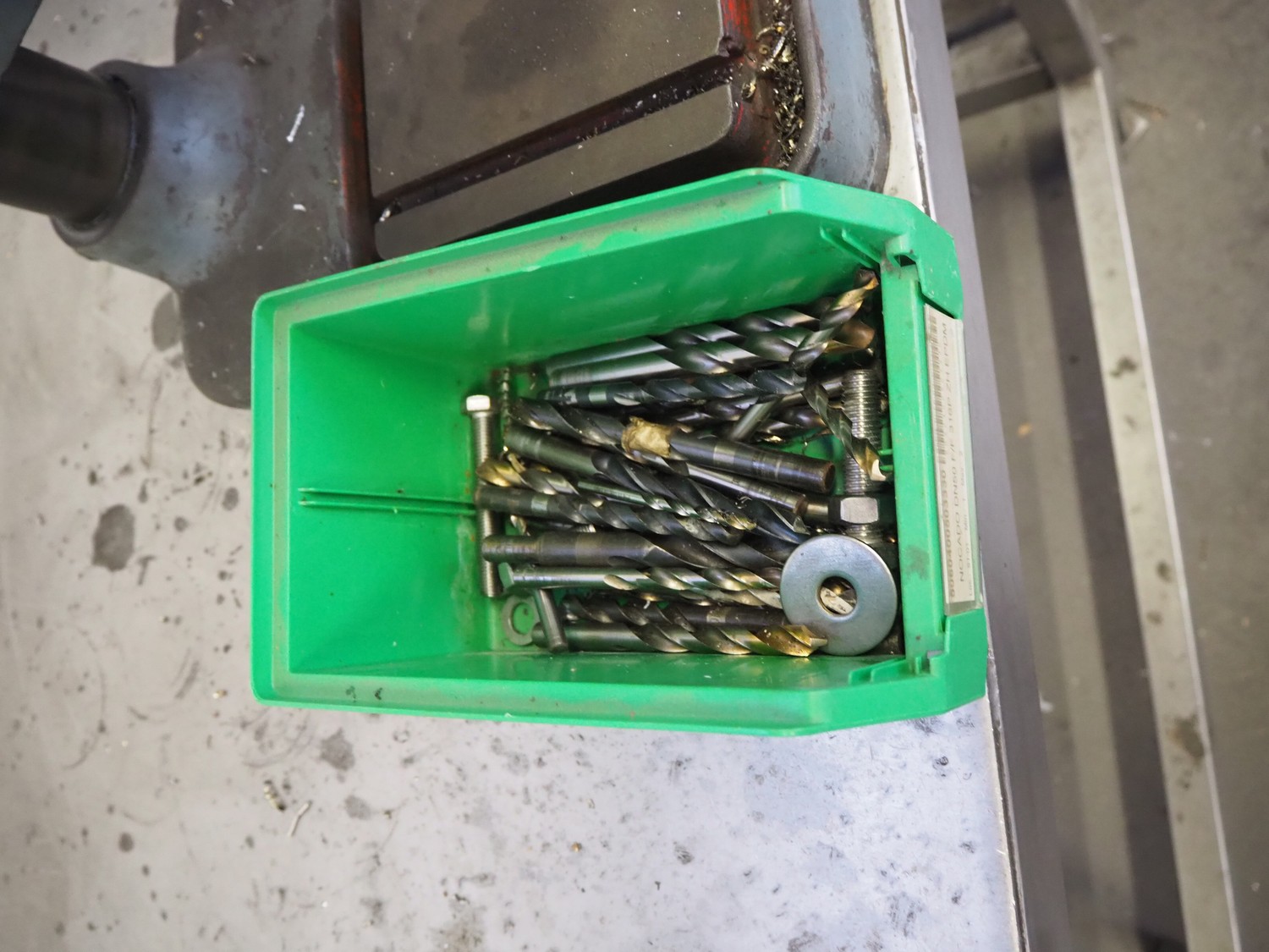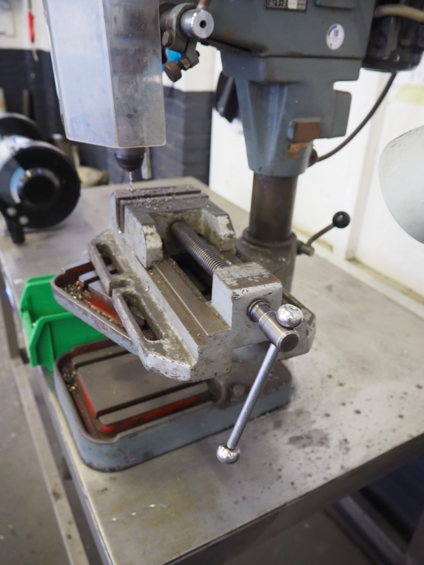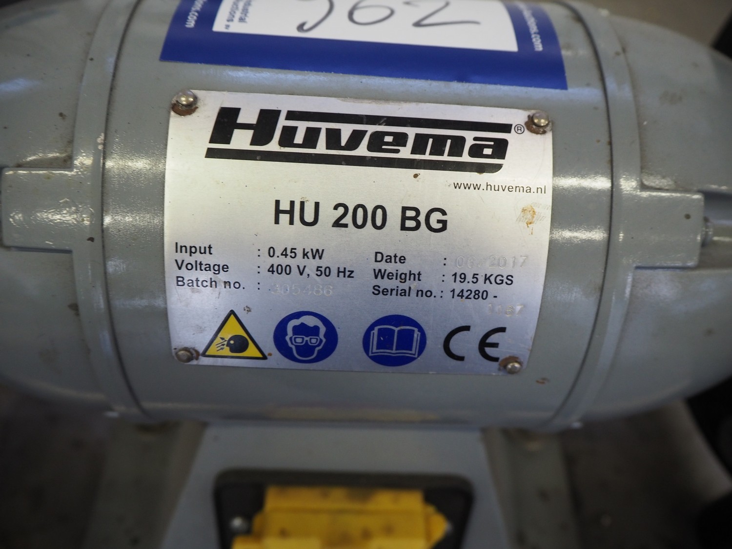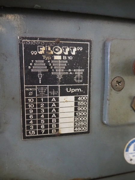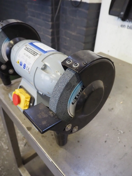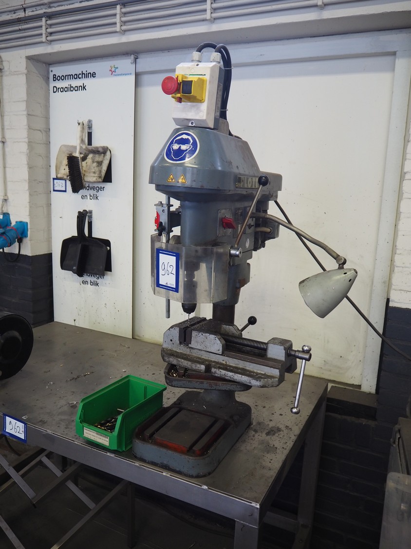 S/s table with Flott column drill, type: B10, dimensions: 500 mm x 600 mm x 1000 mm, Huvema grinder, type: HU 200 BG, serial number: 14280, year of construction: 06/2017, 400 V, 50 Hz, 0.45 kW, grinding disc diameter: 200 mm, dimensions: 480 mm x 270 mm x 300 mm, total dimensions: 1400 mm x 800 mm x 900 mm.