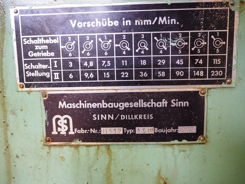Maschinenbaugesellschaft Sinn column drill, type: MS III, factory number: 01517, year of construction: 1962, dimensions: 1800 mm x 1400 mm x 1900 mm.