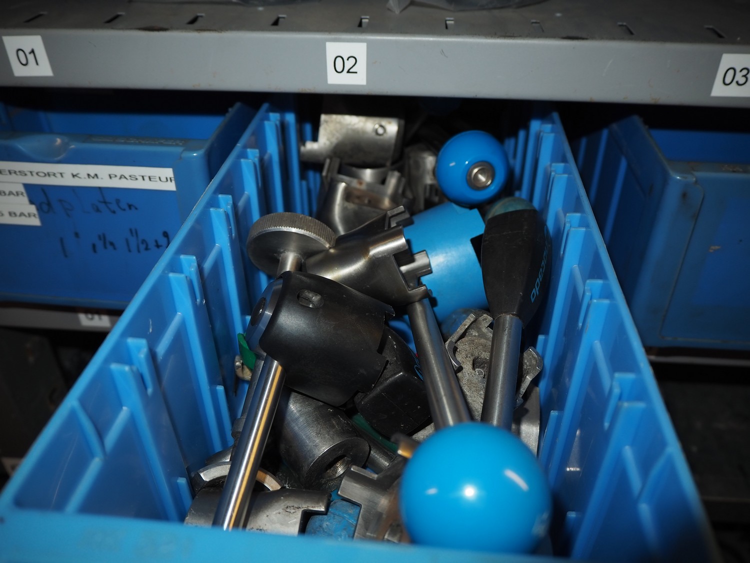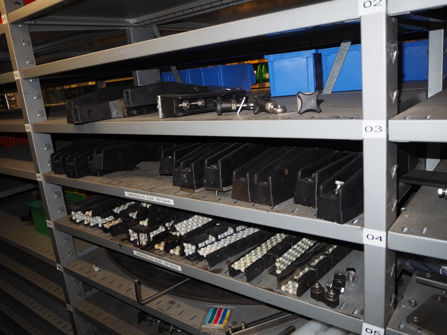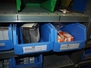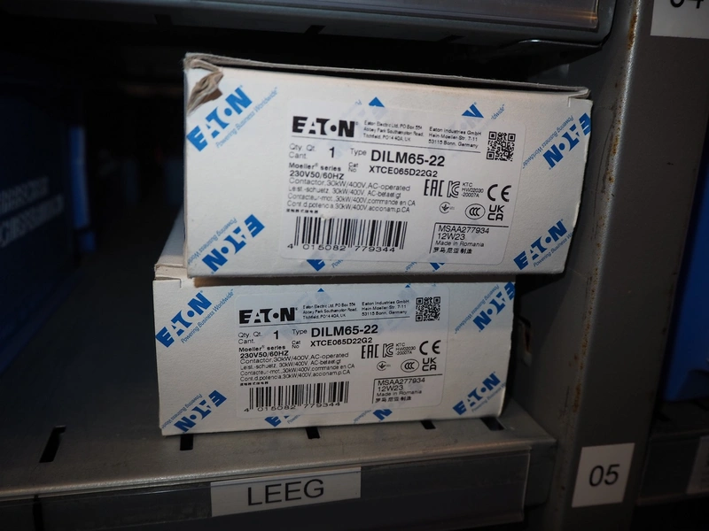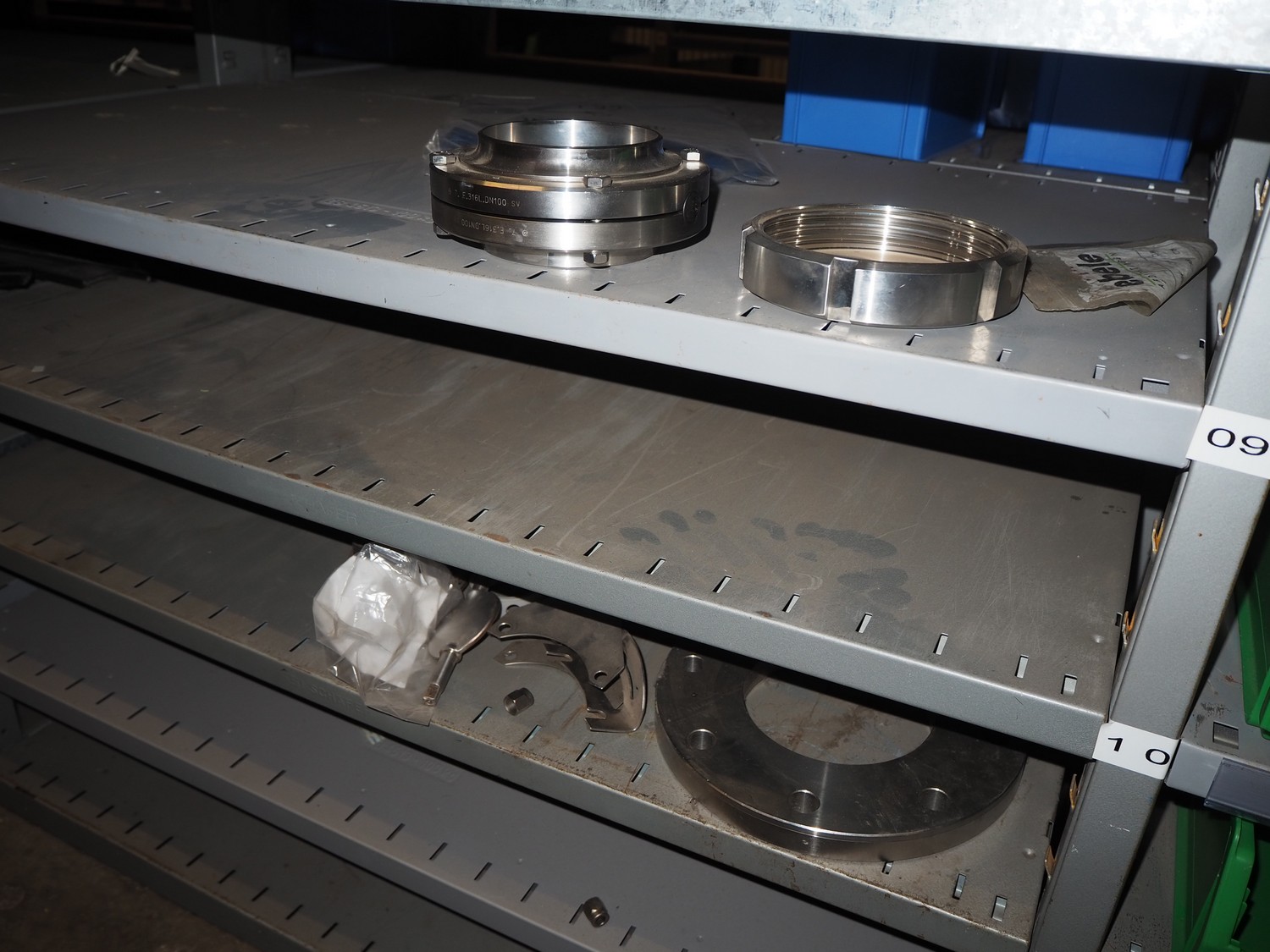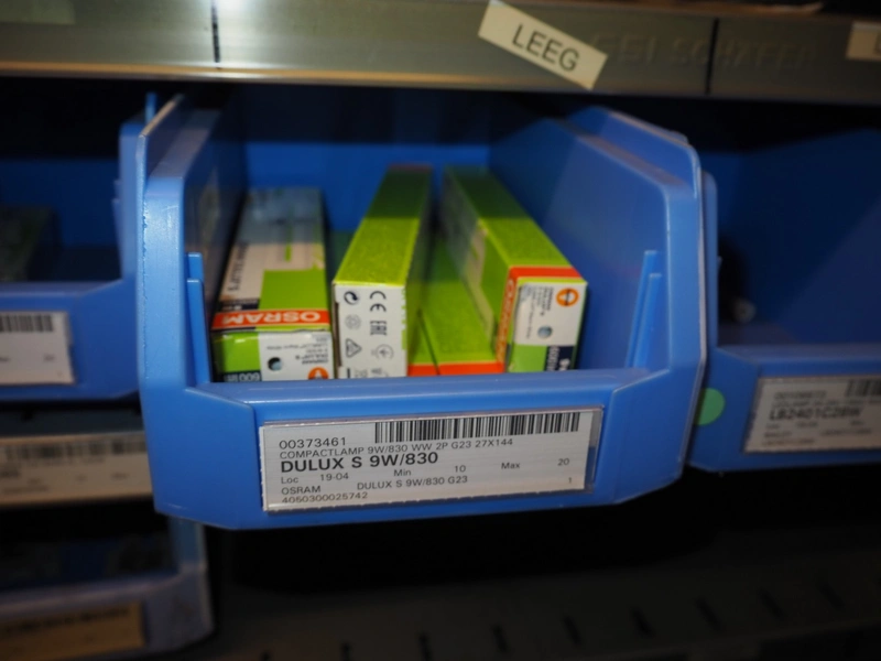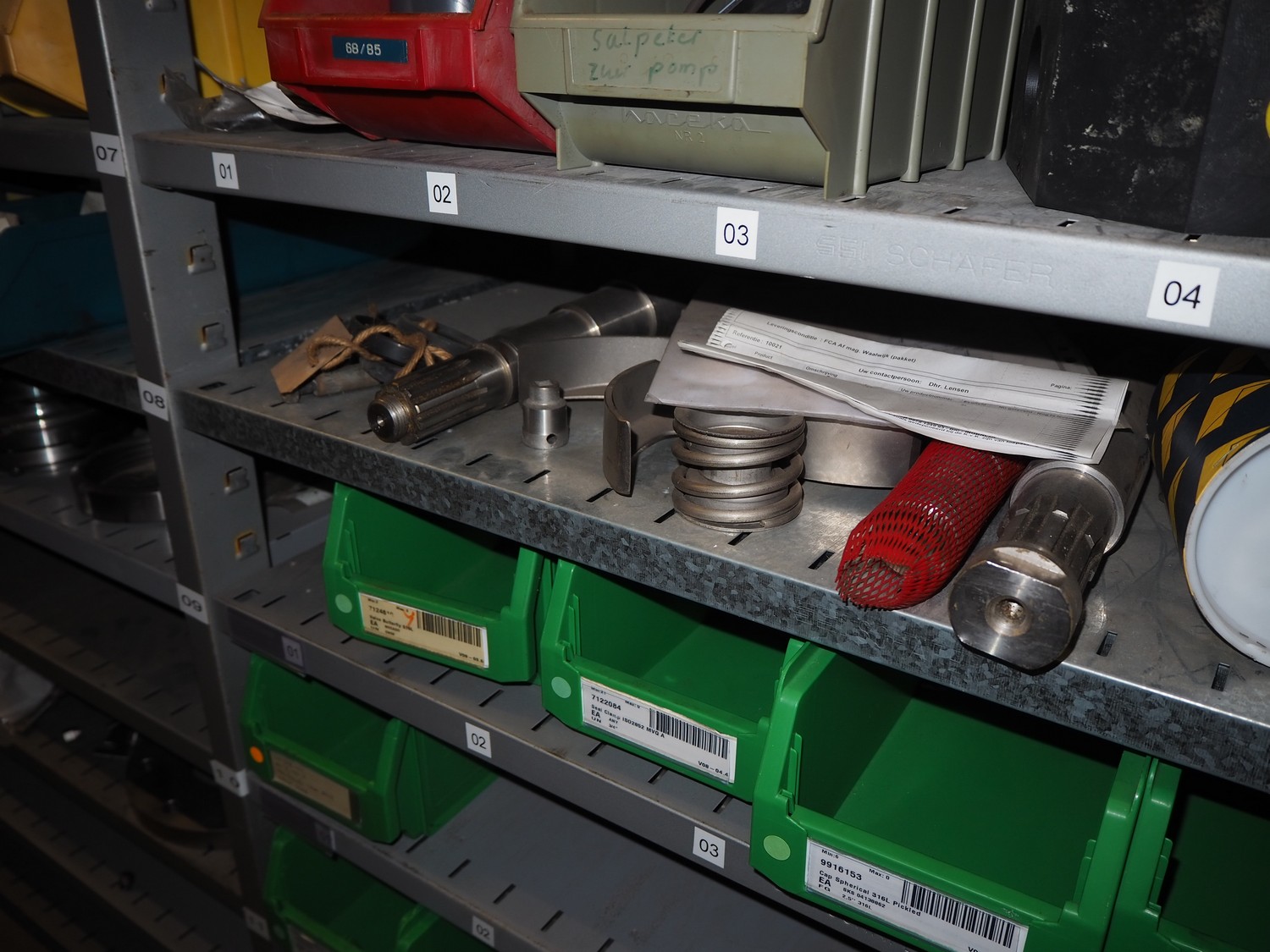 Steel racks with large amount of electrical parts, sensors, brands among others, dimensions: 7250 mm x 1000 mm x 2170 mm.