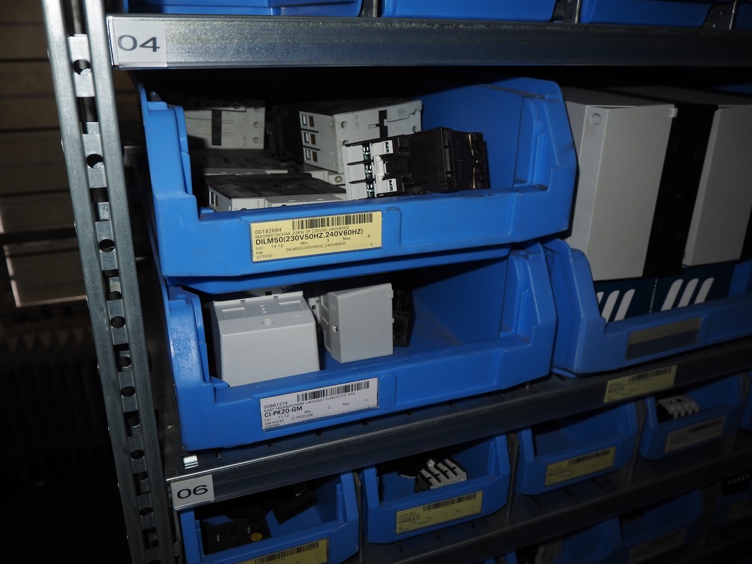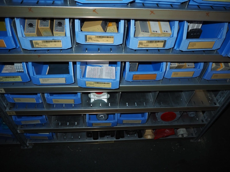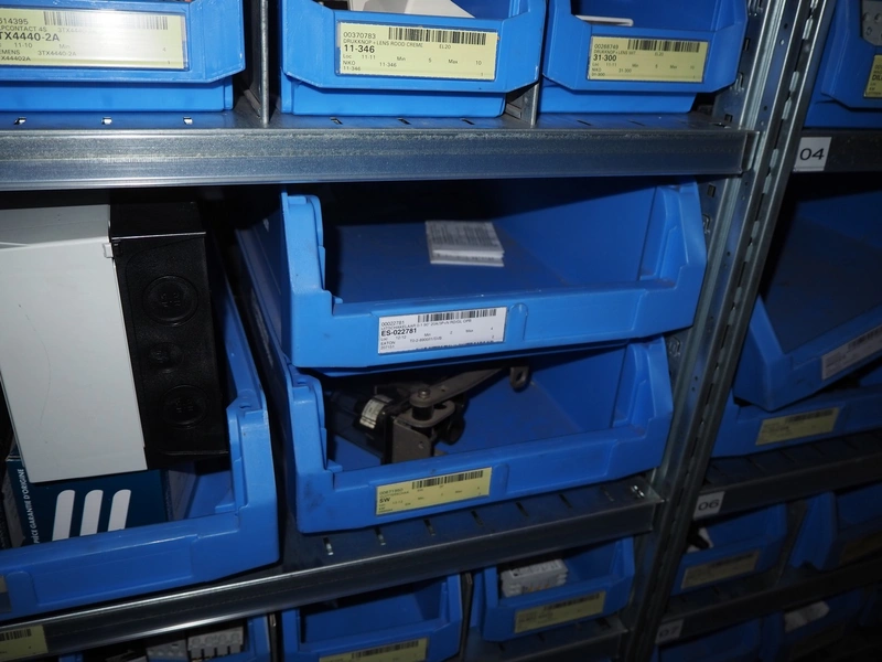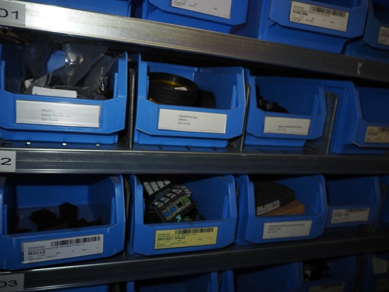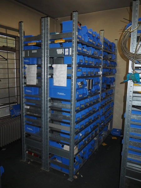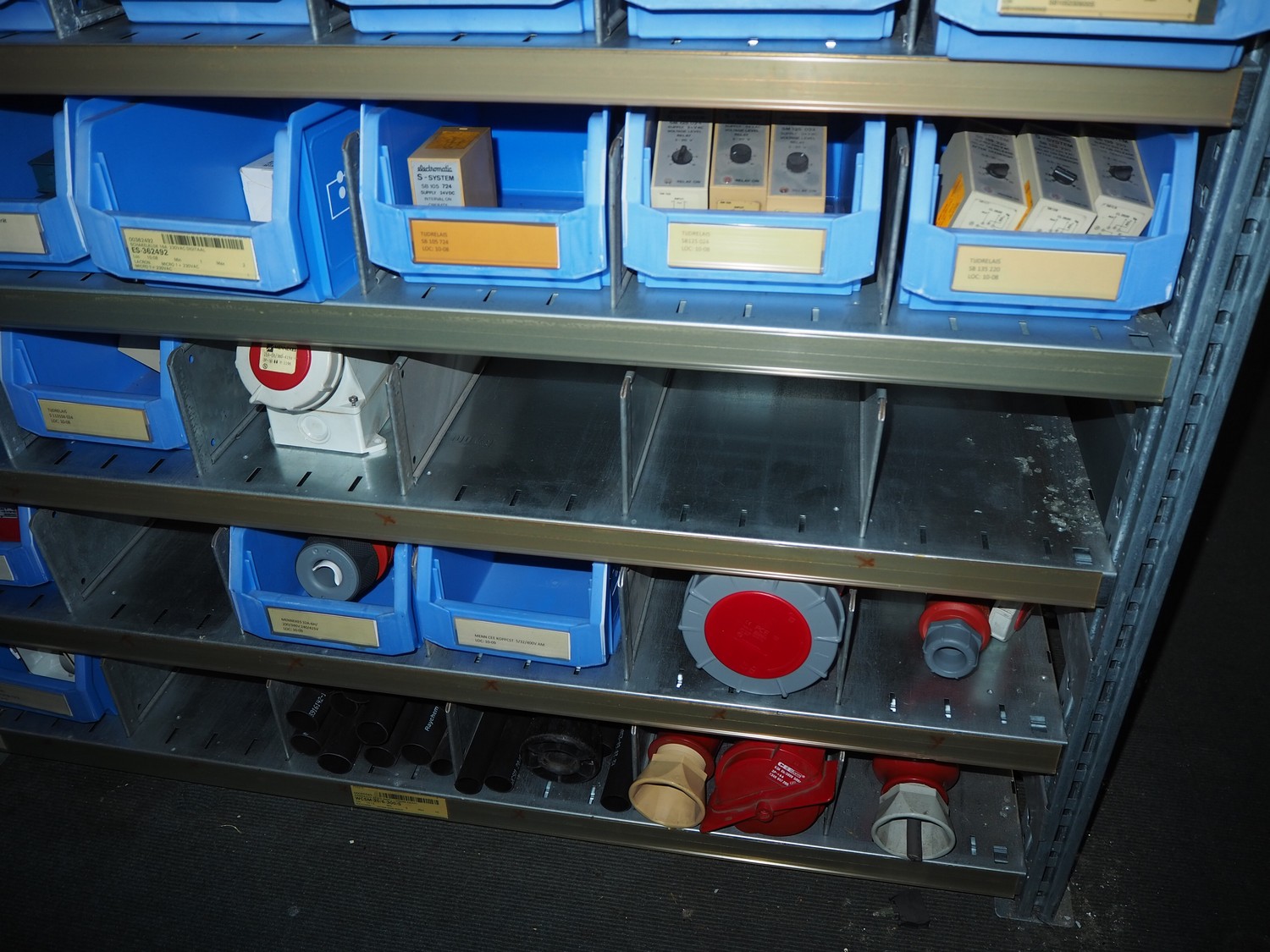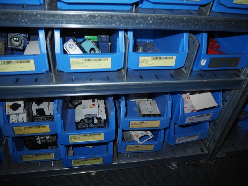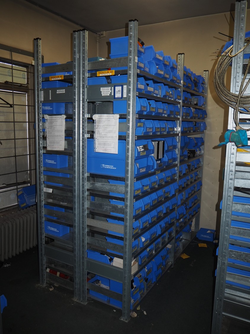 4 steel racks with various electrical parts, dimensions: (4x) 1060 mm x 500 mm x 2300 mm.
