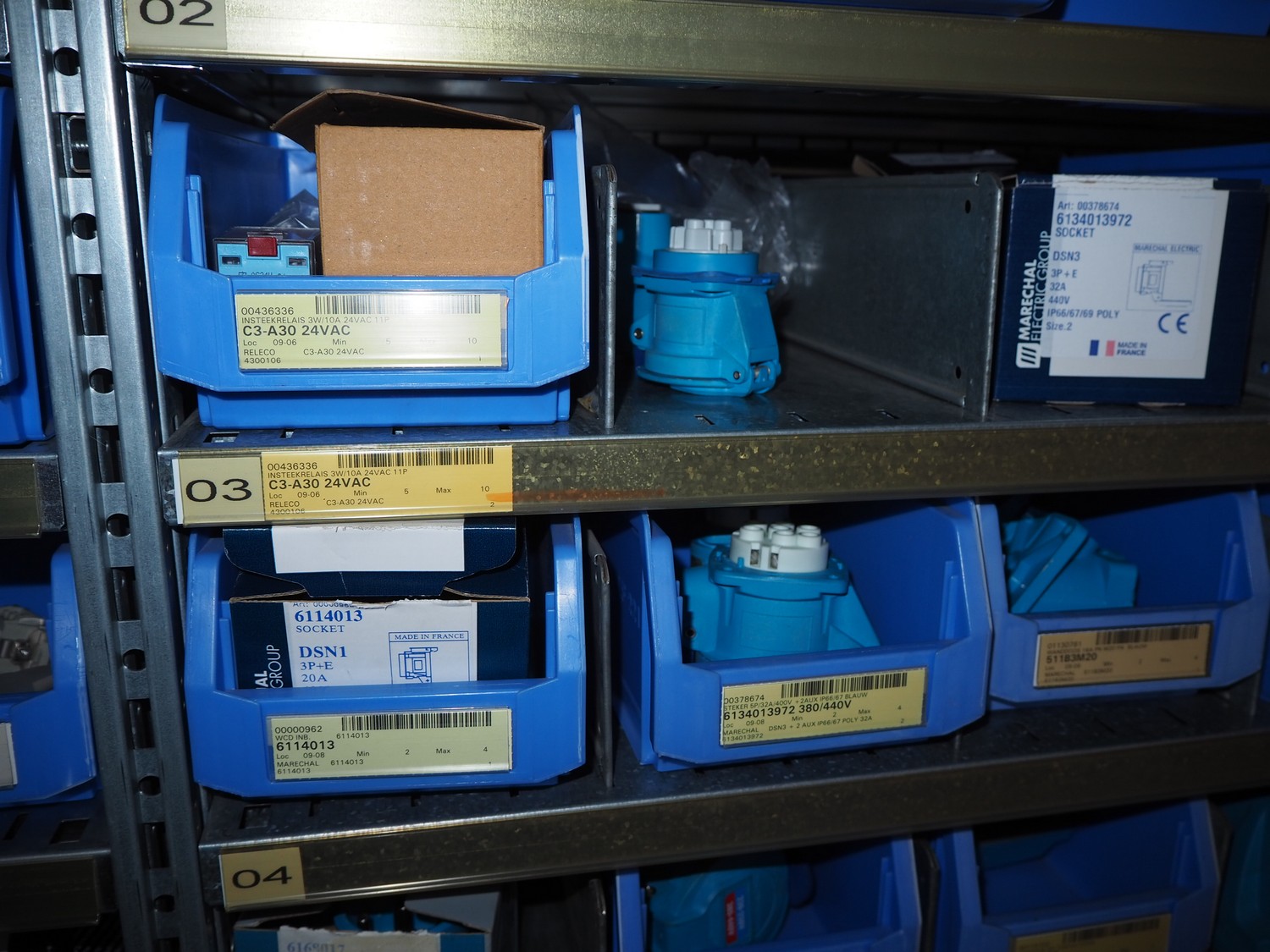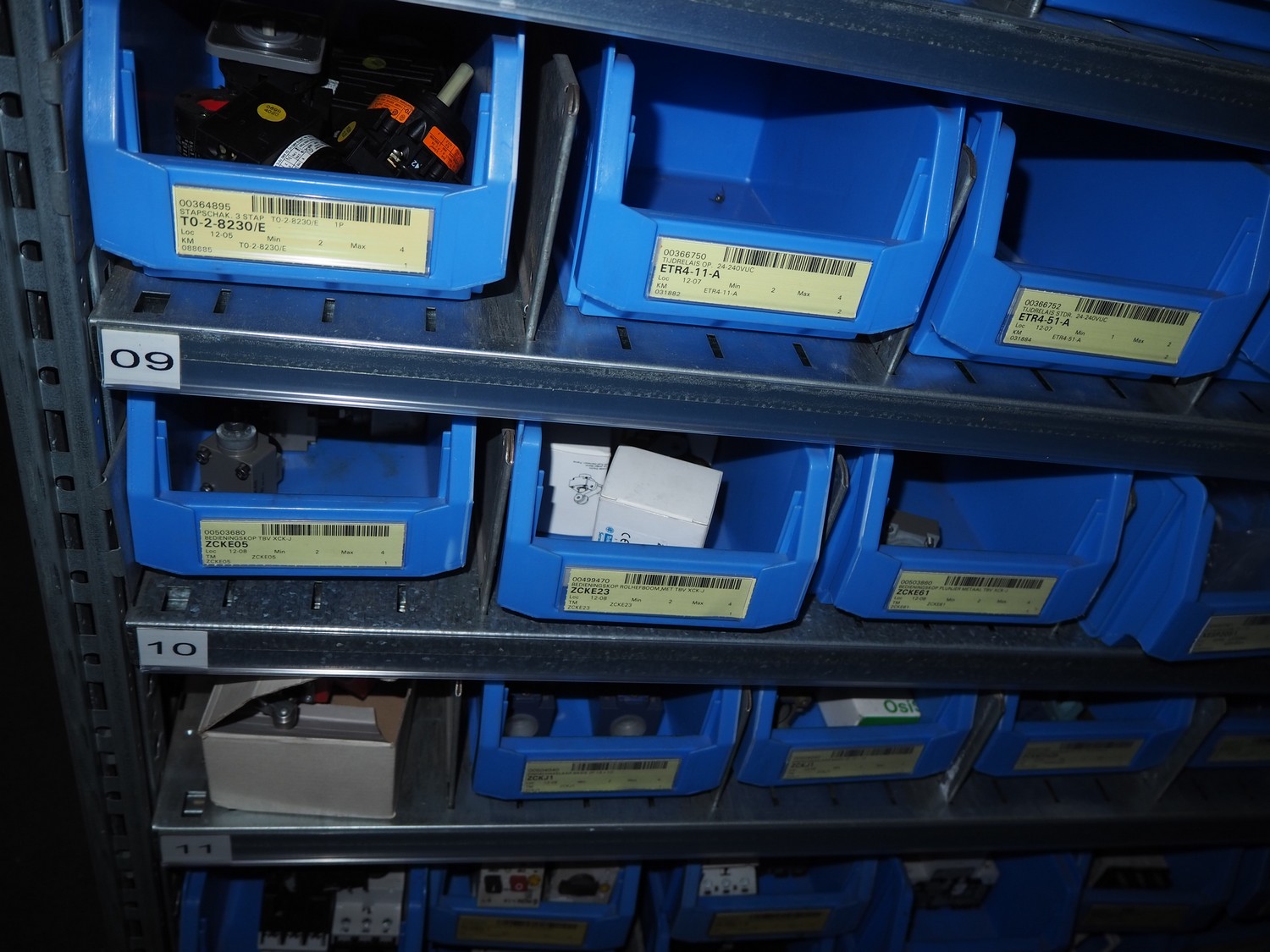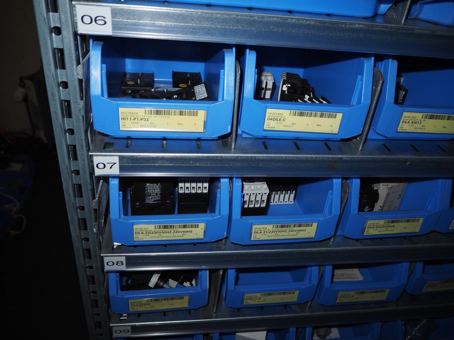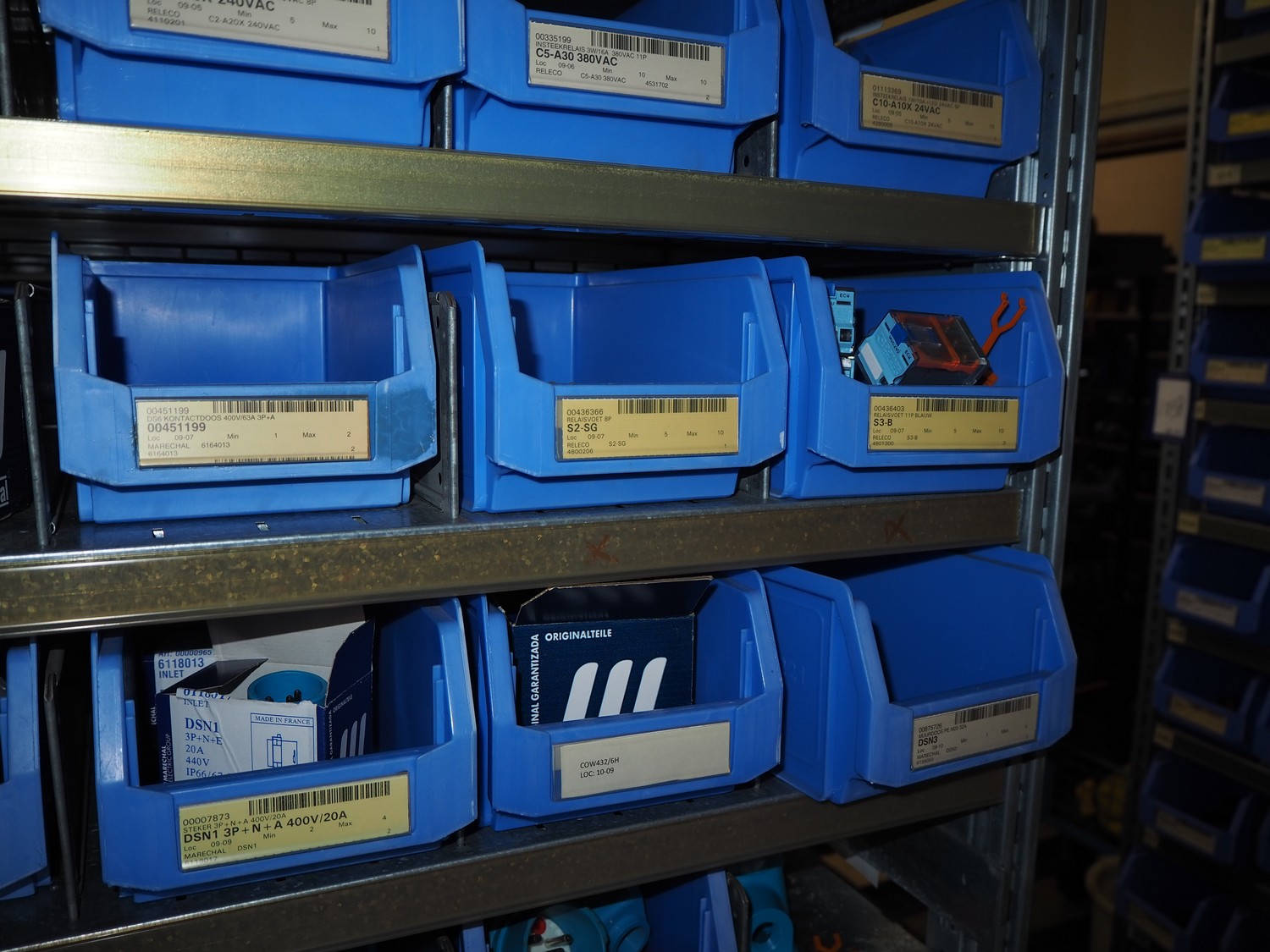 4 steel racks with various electrical parts, dimensions: (4x) 1060 mm x 500 mm x 2300 mm.