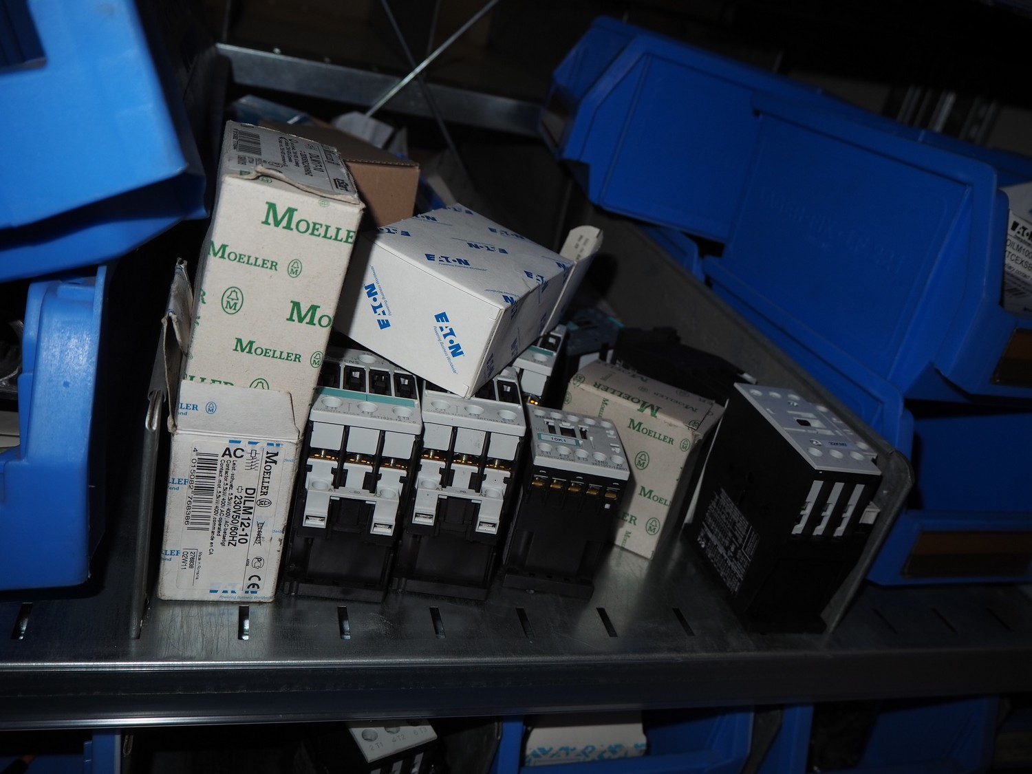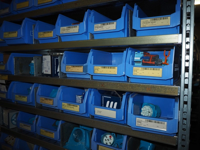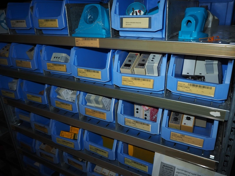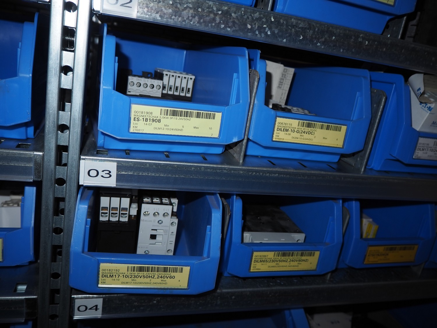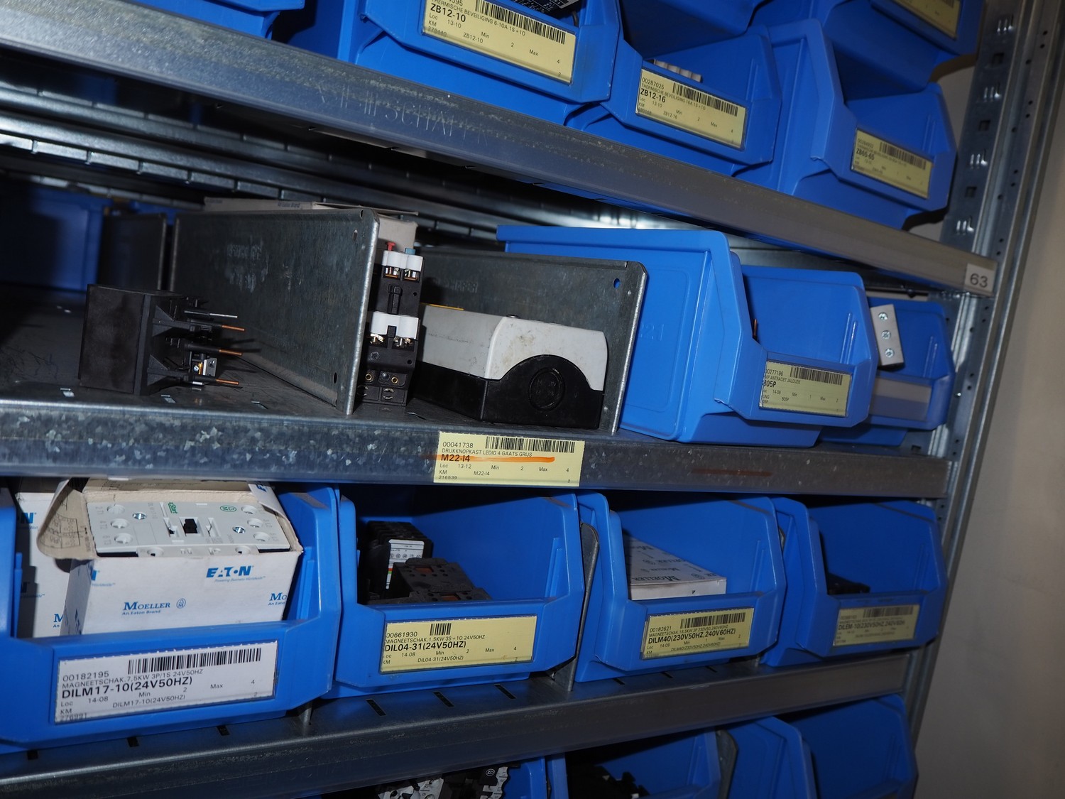 4 steel racks with various electrical parts, dimensions: (4x) 1060 mm x 500 mm x 2300 mm.