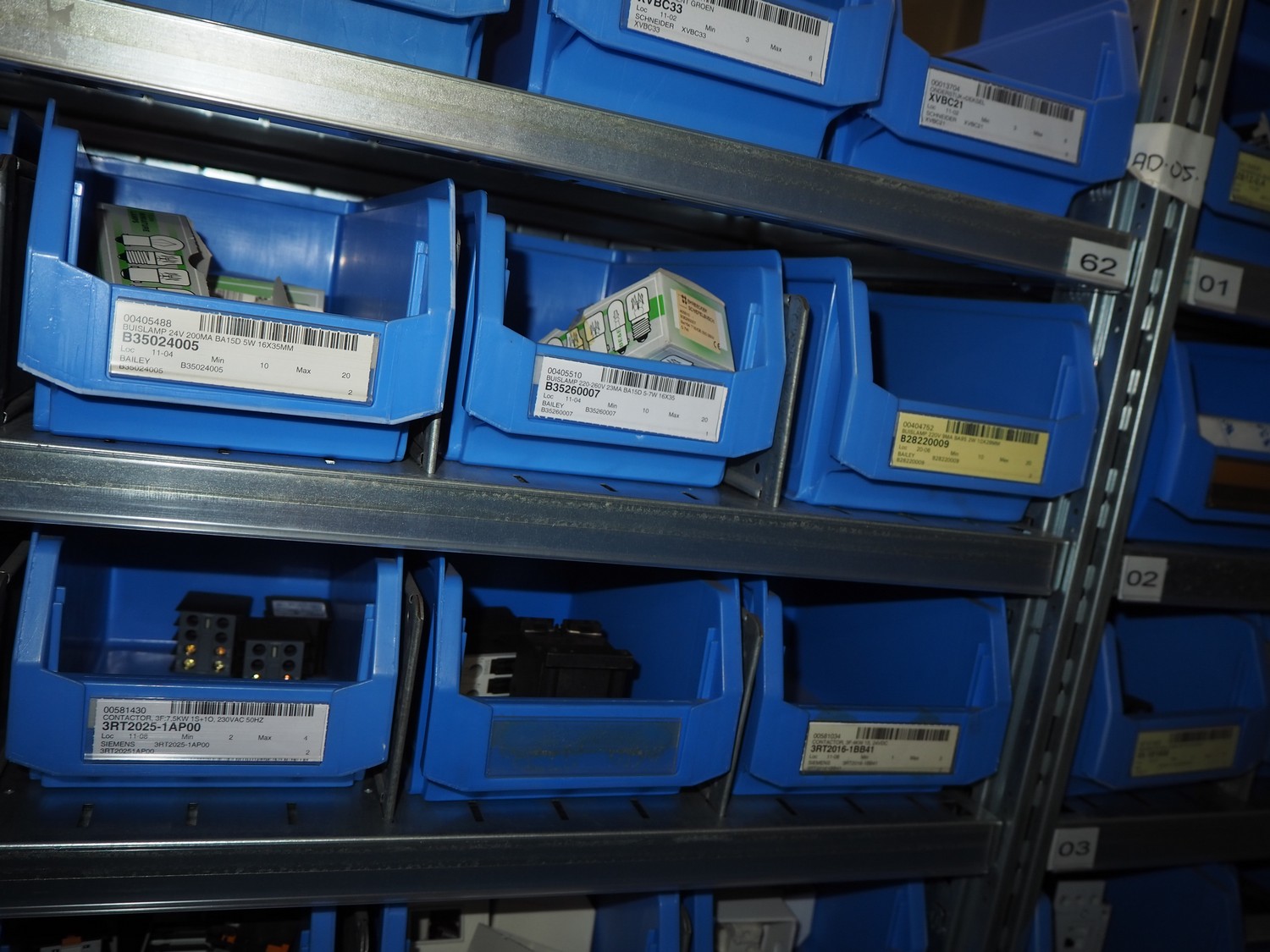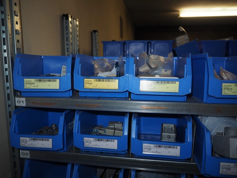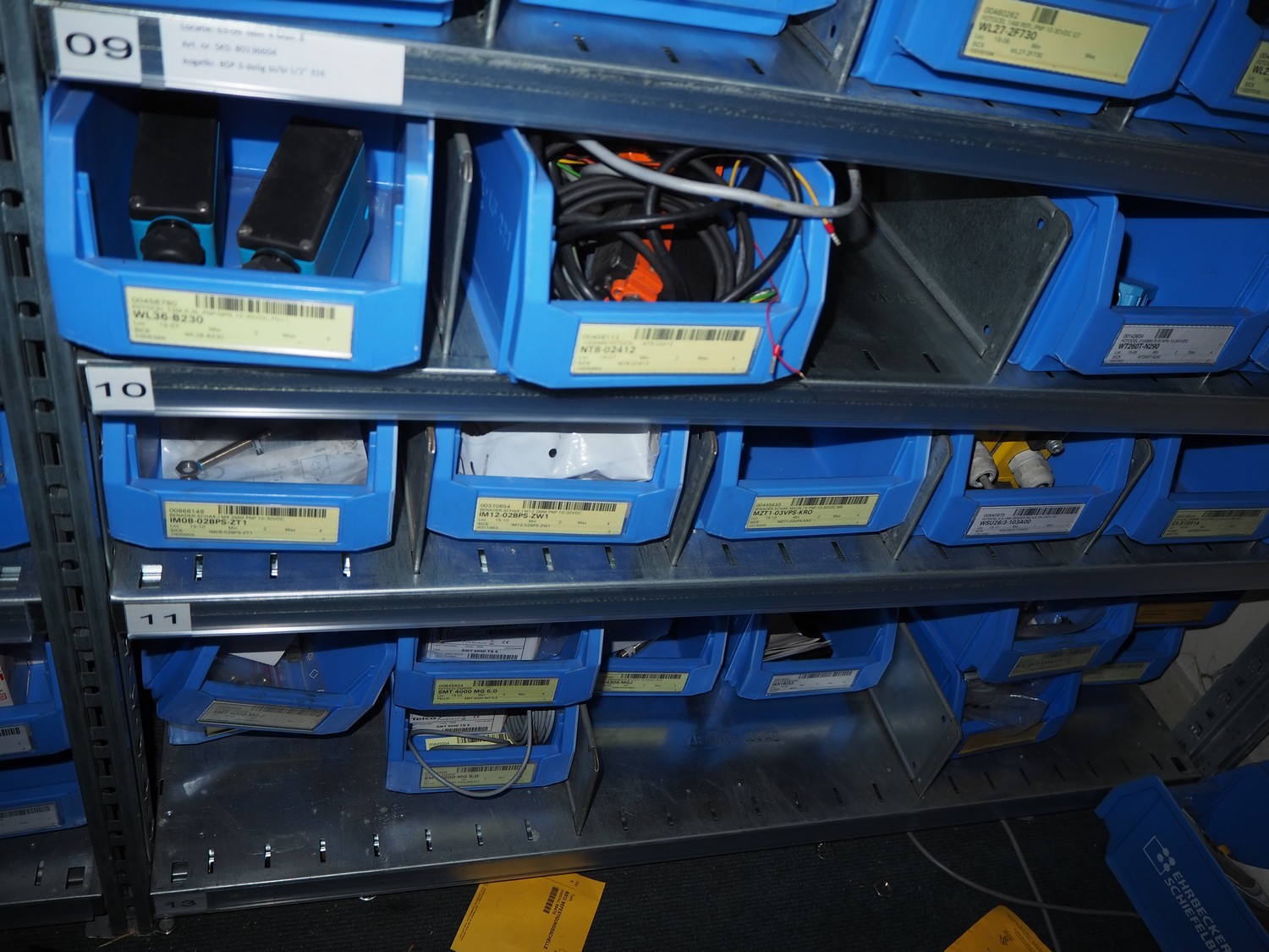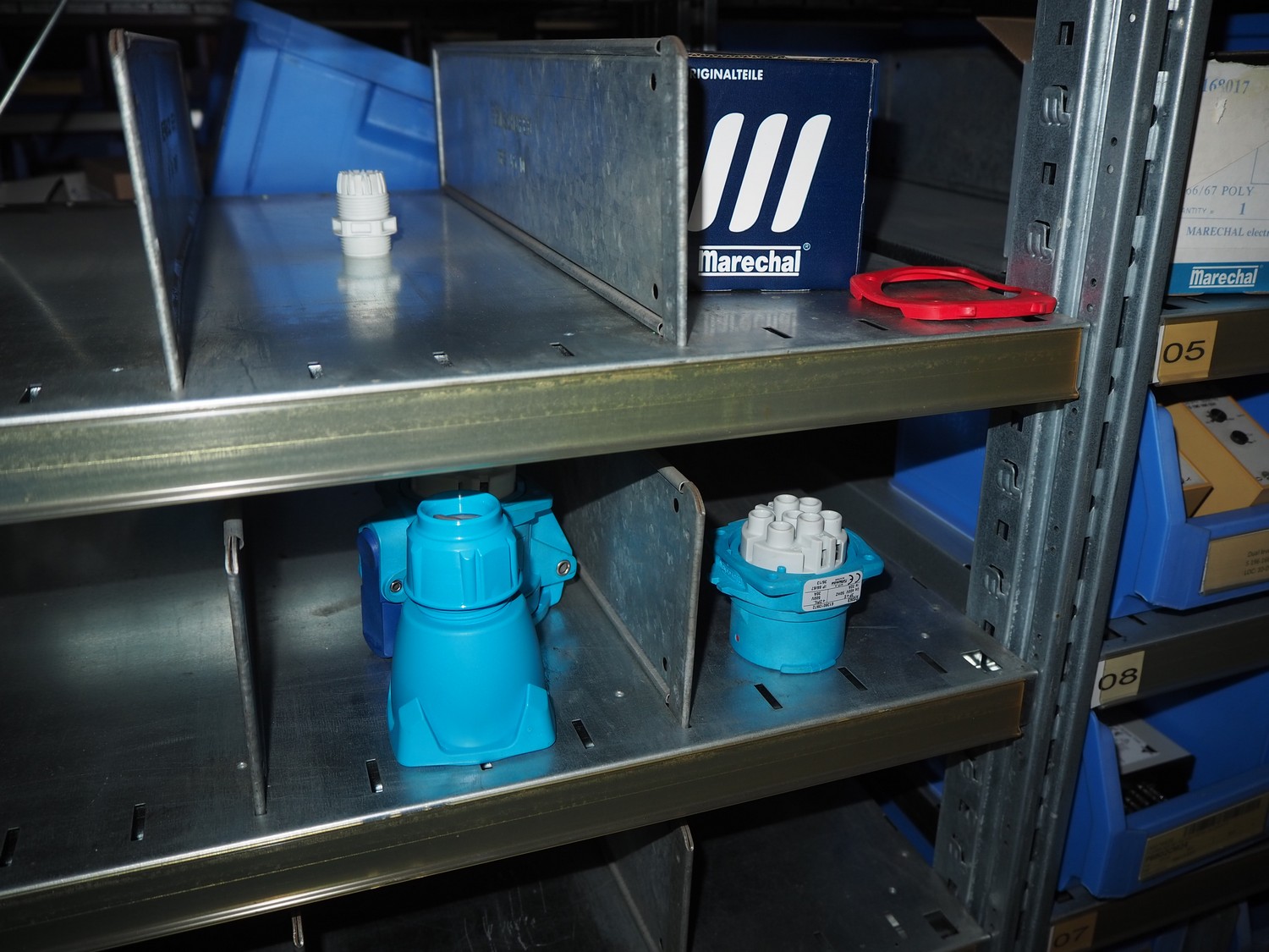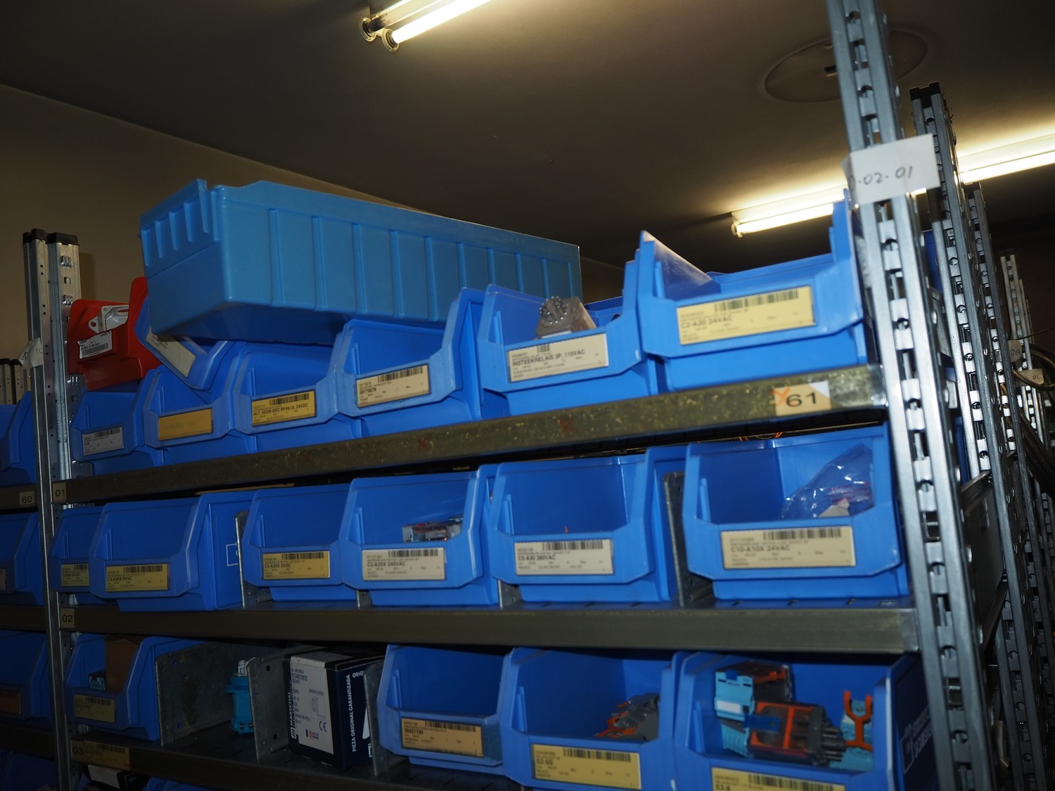 4 steel racks with various electrical parts, dimensions: (4x) 1060 mm x 500 mm x 2300 mm.