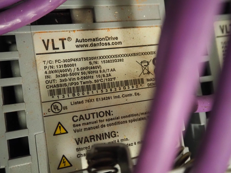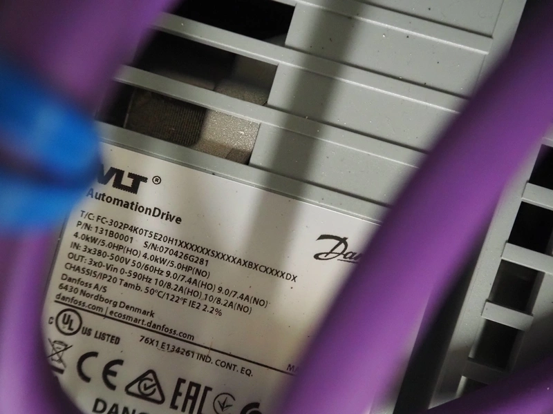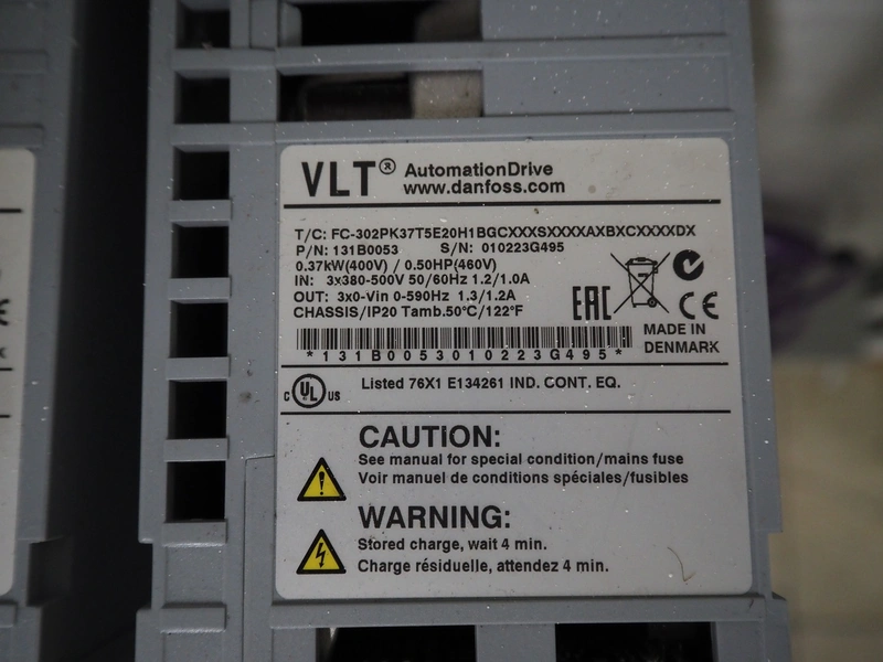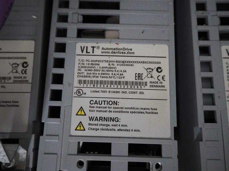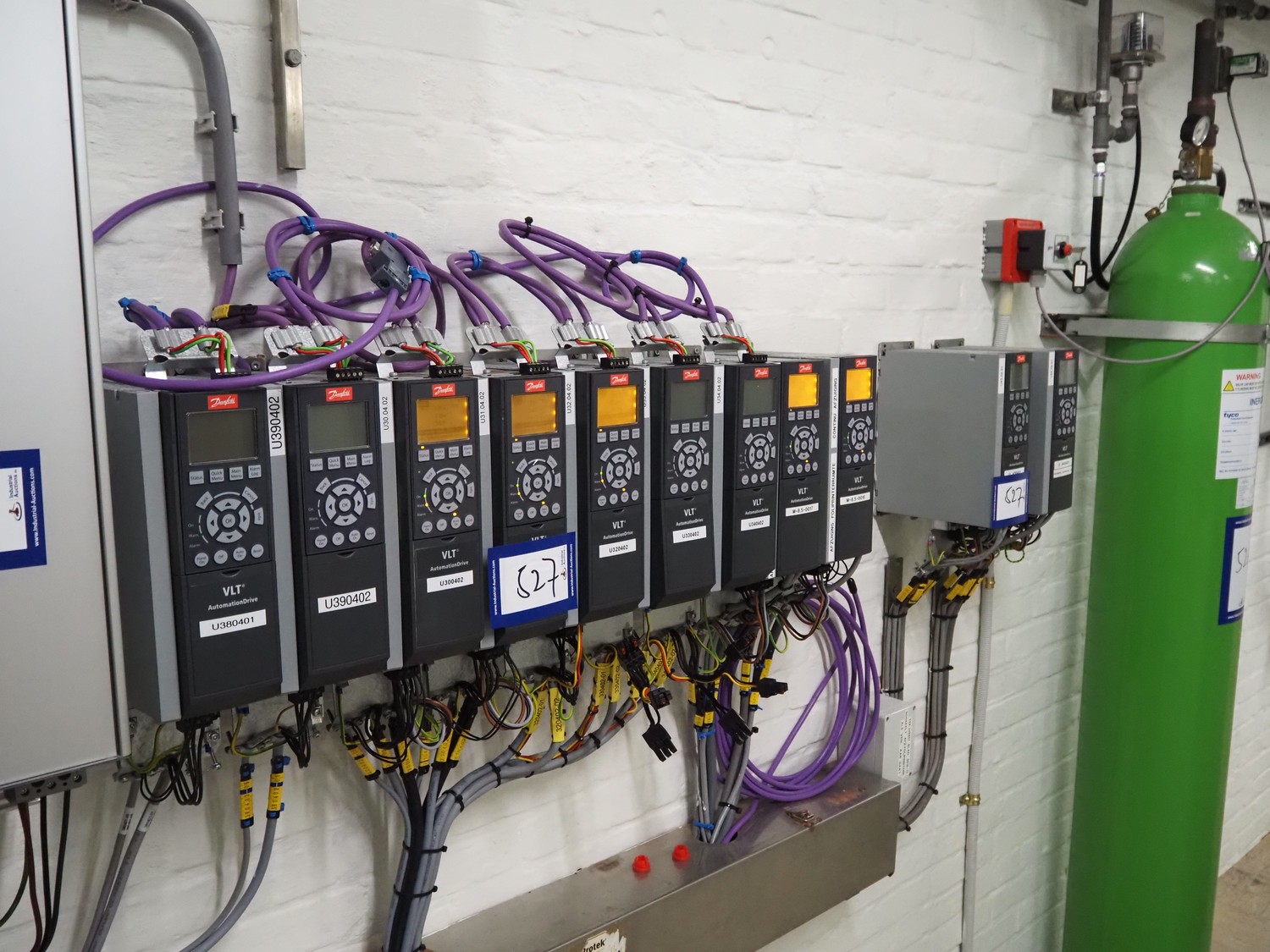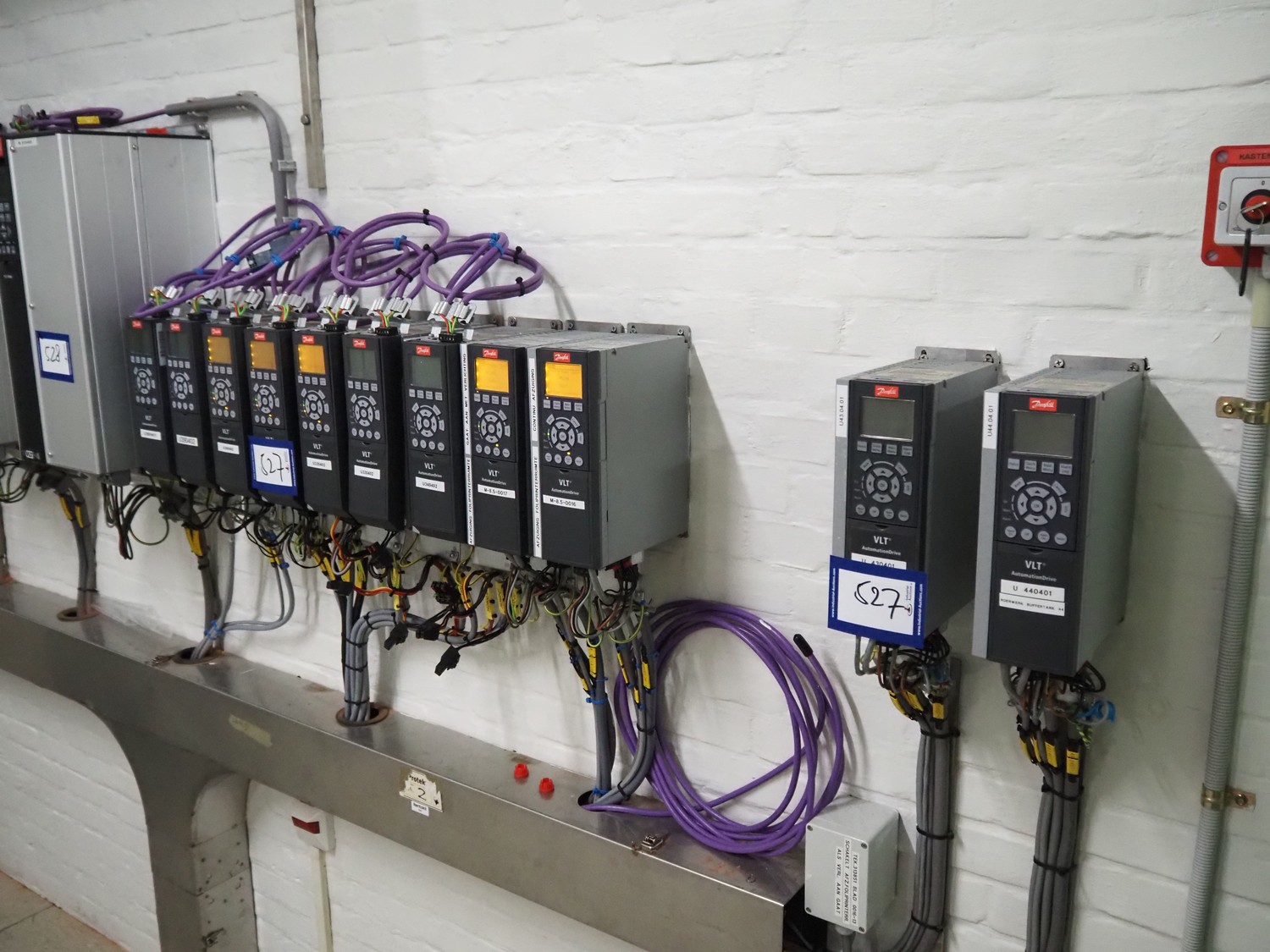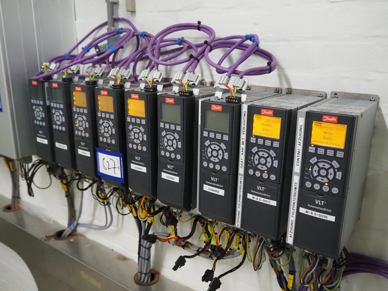 11 Danfoss frequency converters, model: VLT AutomationDrive, dimensions: (11x) 200 mm x 100 mm x 250 mm.