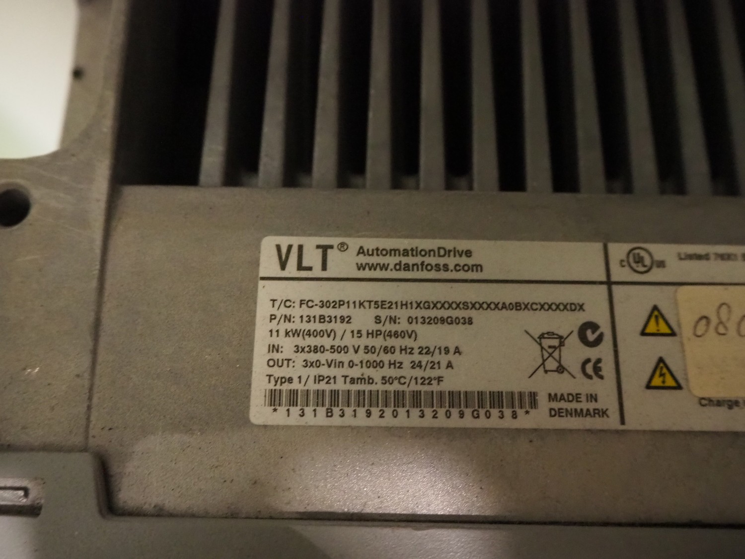 Danfoss frequency converter, 380-500 V, 3 Ph, 50/60 Hz, 22/19 A, 11 kW, dimensions: 220 mm x 280 mm x 450 mm.