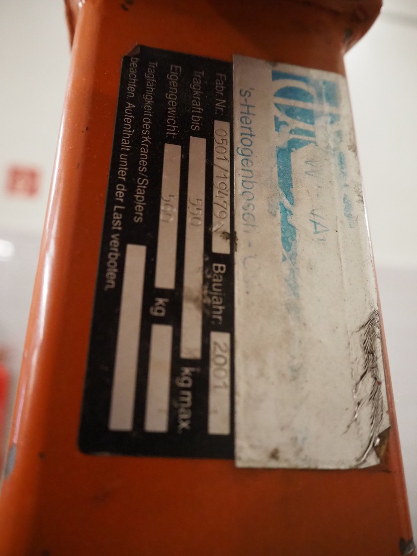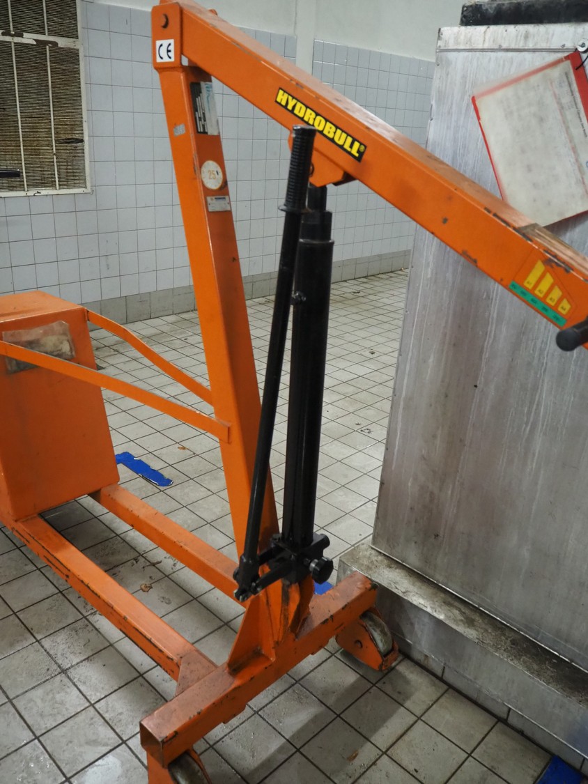 Hydrobull mobile hoist, fabrication number: 0501/19479, year of construction: 2001, capacity: 550 kg, dimensions: 2450 mm x 800 mm x 1650 mm.