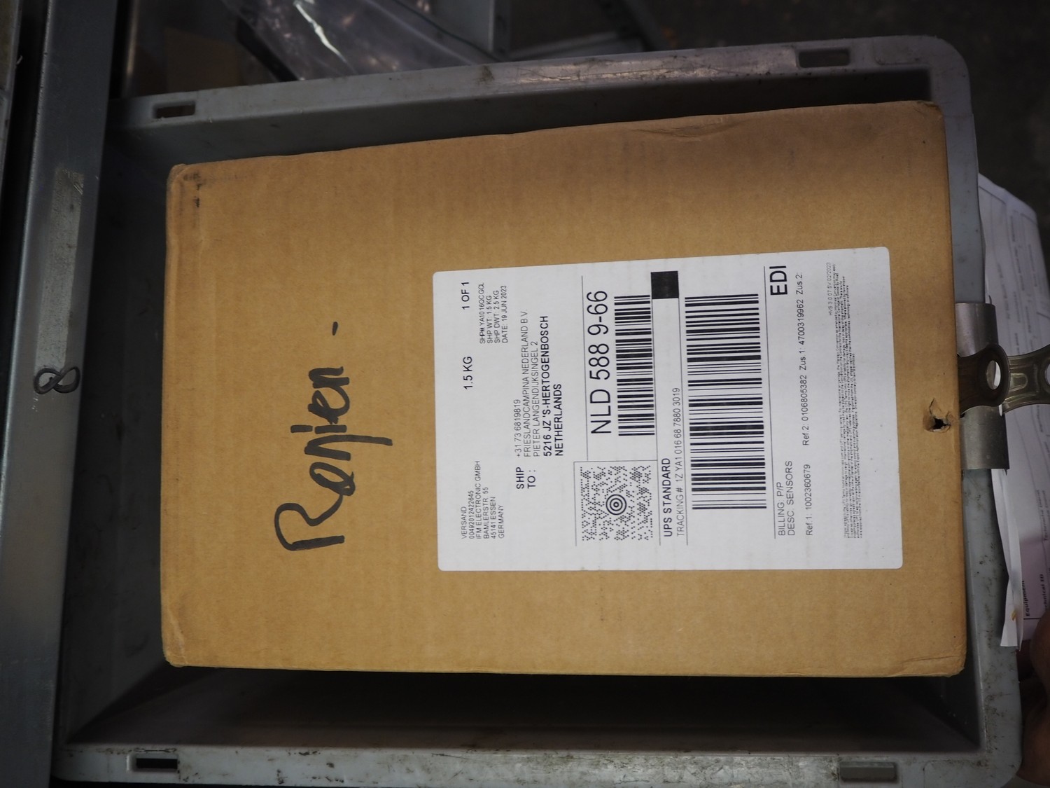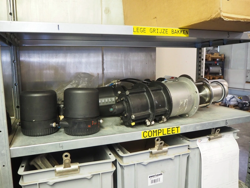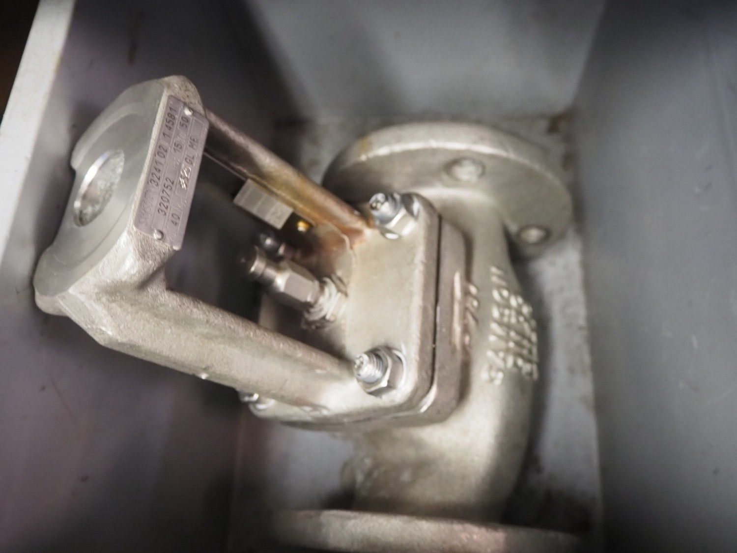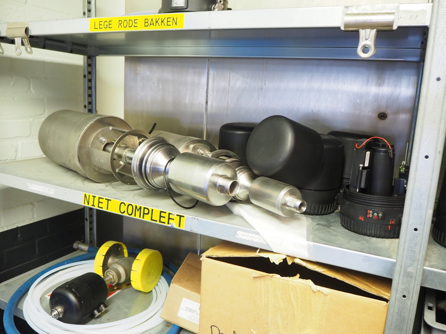 Steel rack with various valves and parts, 10 floors, floor dimensions: 980 mm x 400 mmm, total dimensions: 2080 mm x 400 mm x 2000 mm.