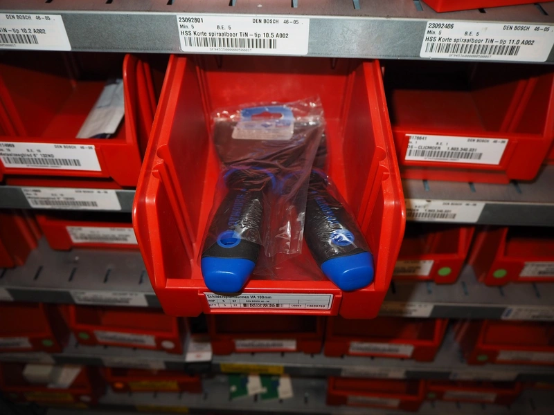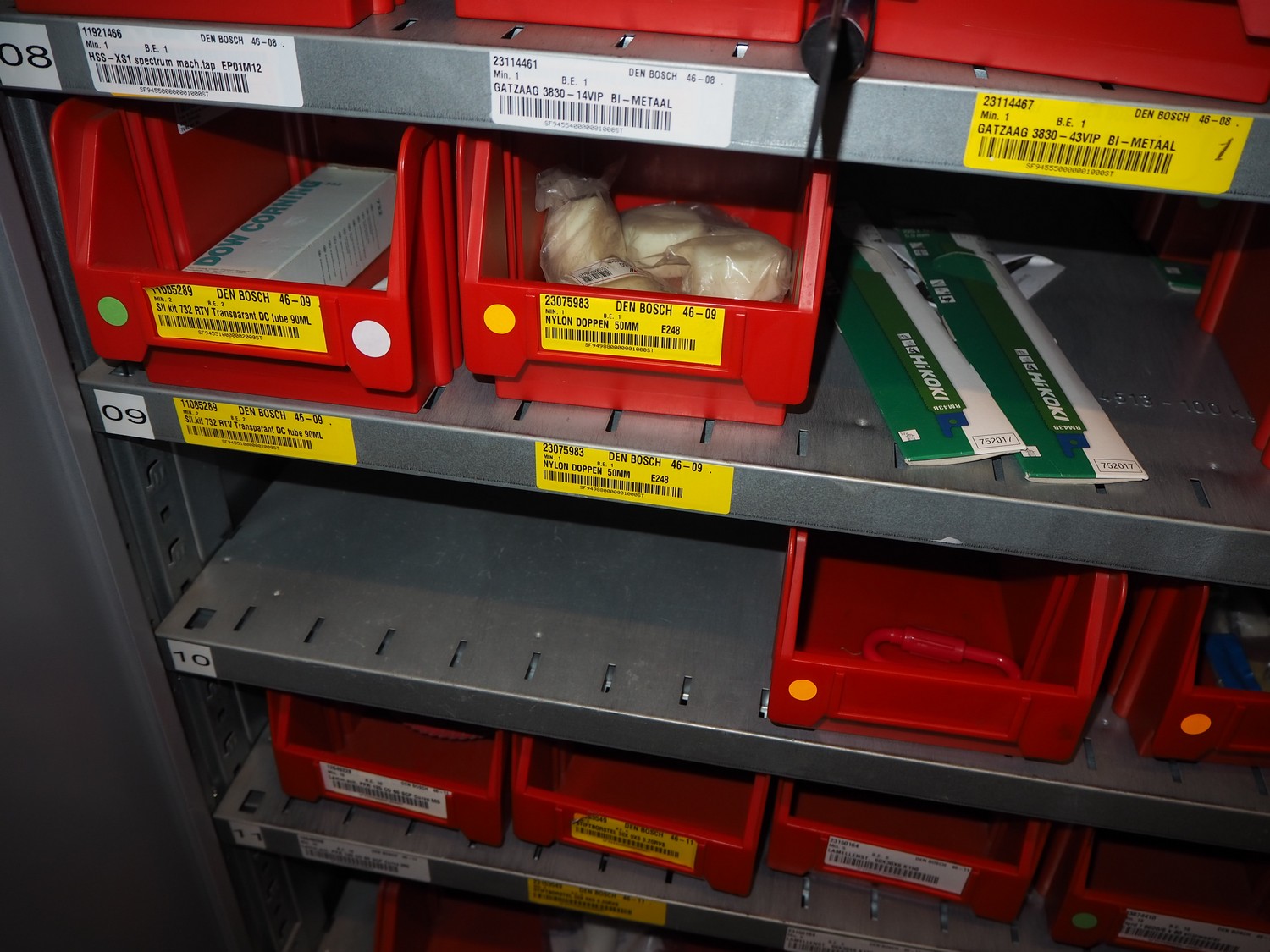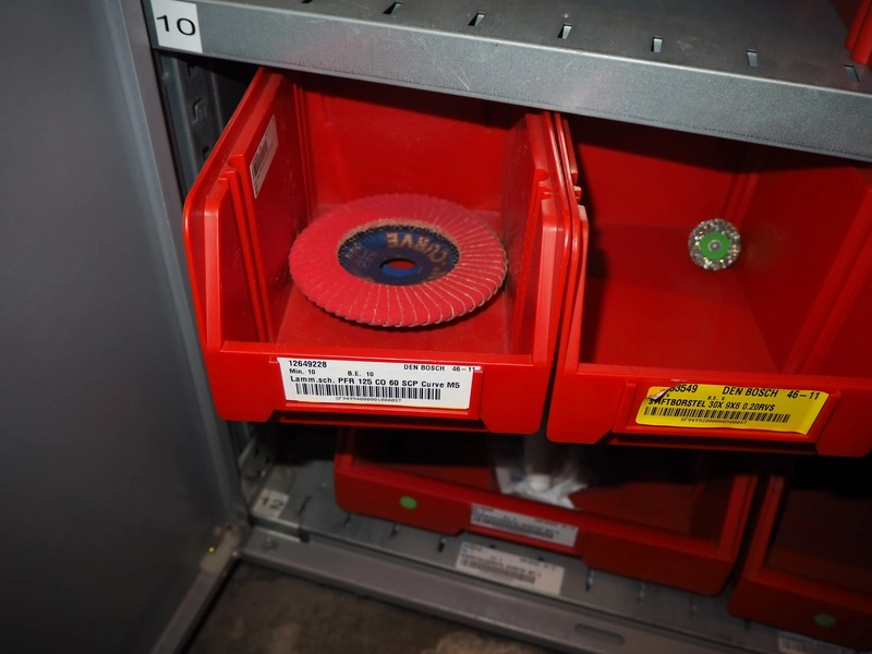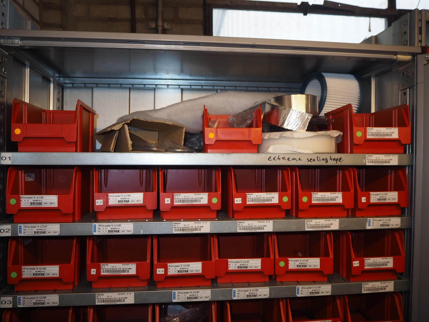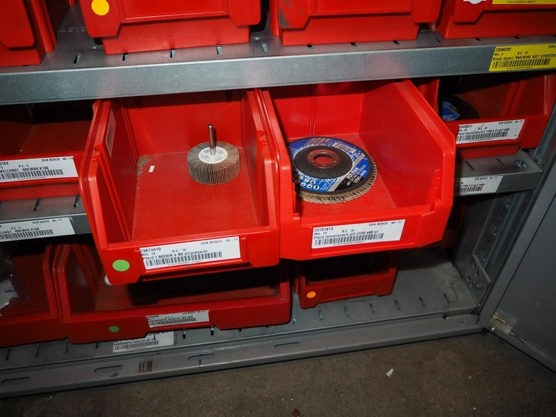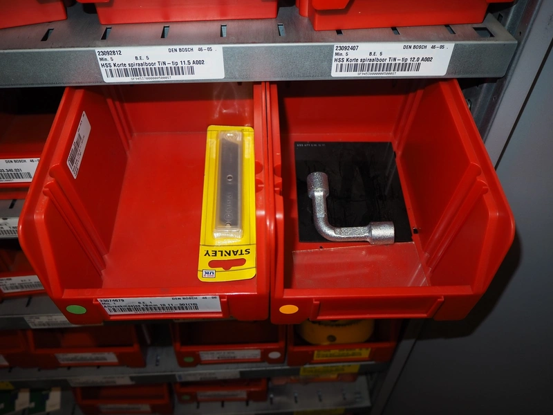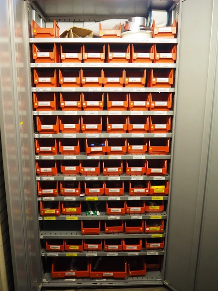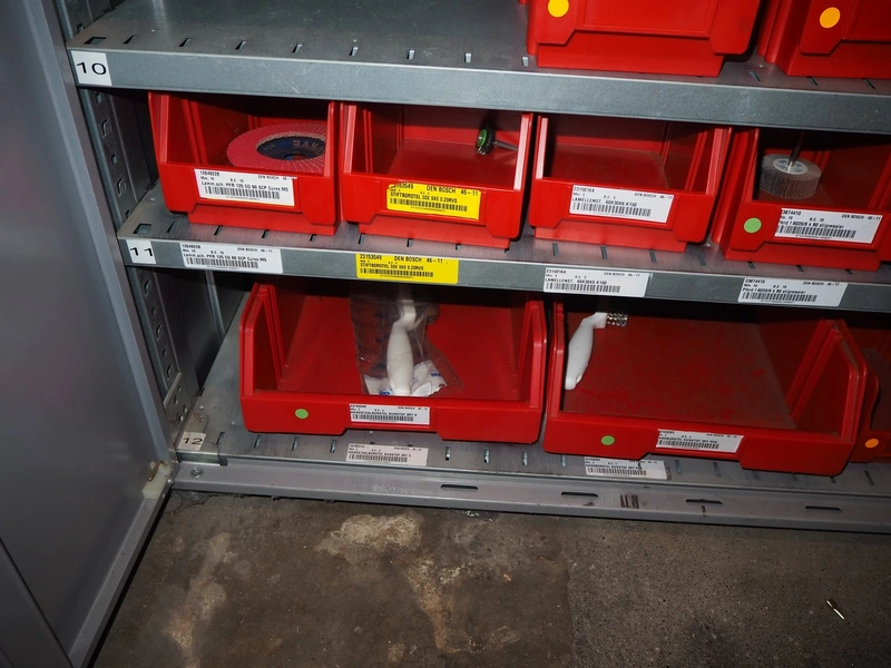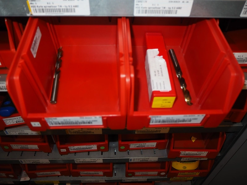 Steel cabinet with drills, taps, bearings and other tools, dimensions: 1020 mm x 500 mm x 2200 mm.