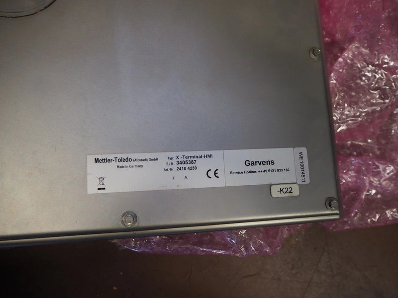 Mettler-Toledo GmbH control screen, type: X-Terminal-HMI, serial number: 3405387, dimensions: 500 mm x 350 mm x 200 mm.