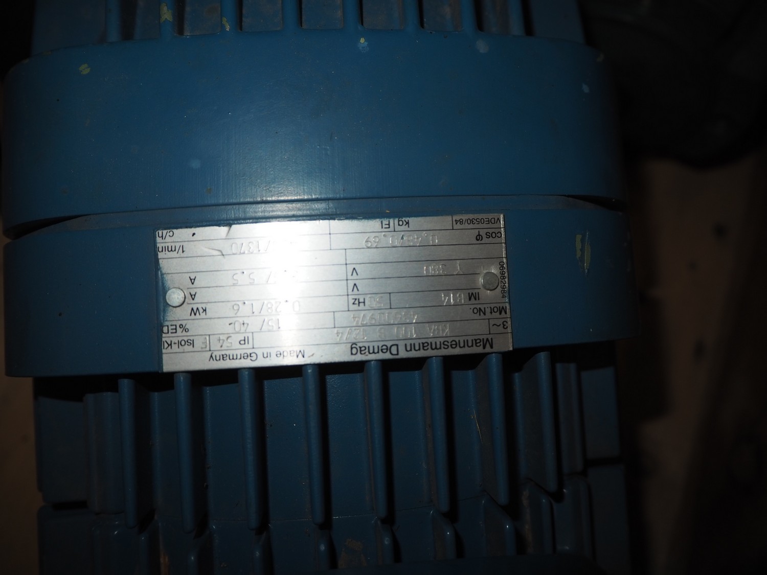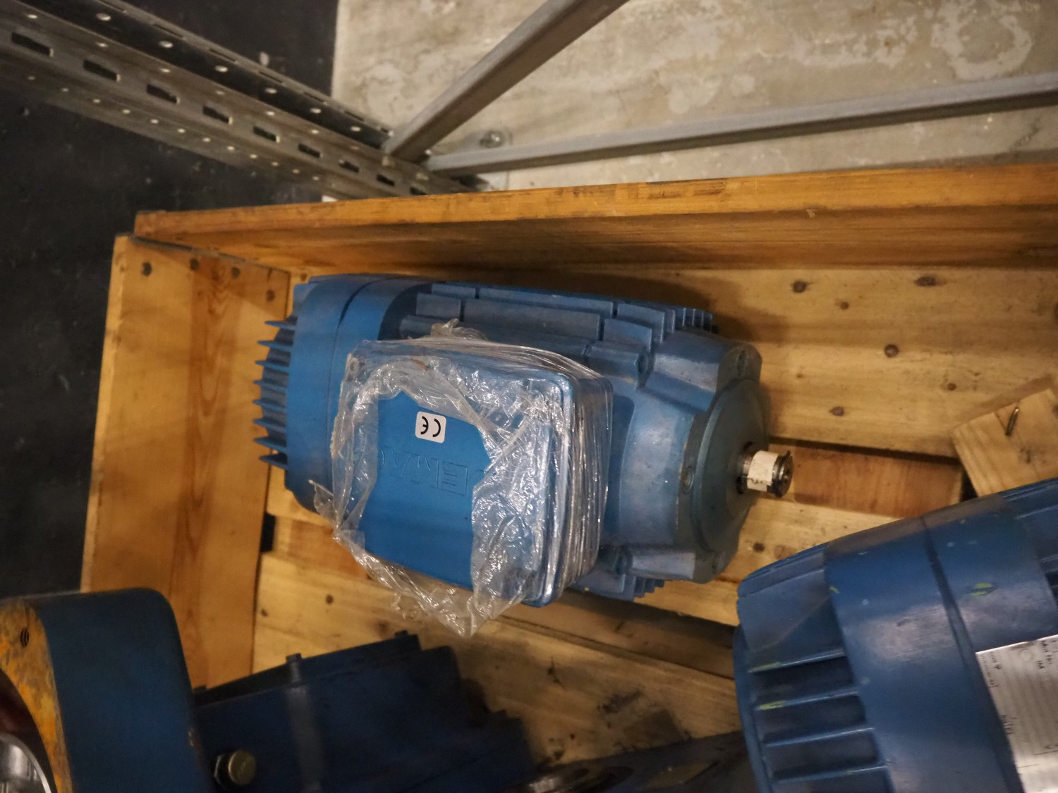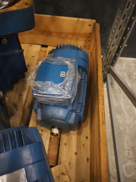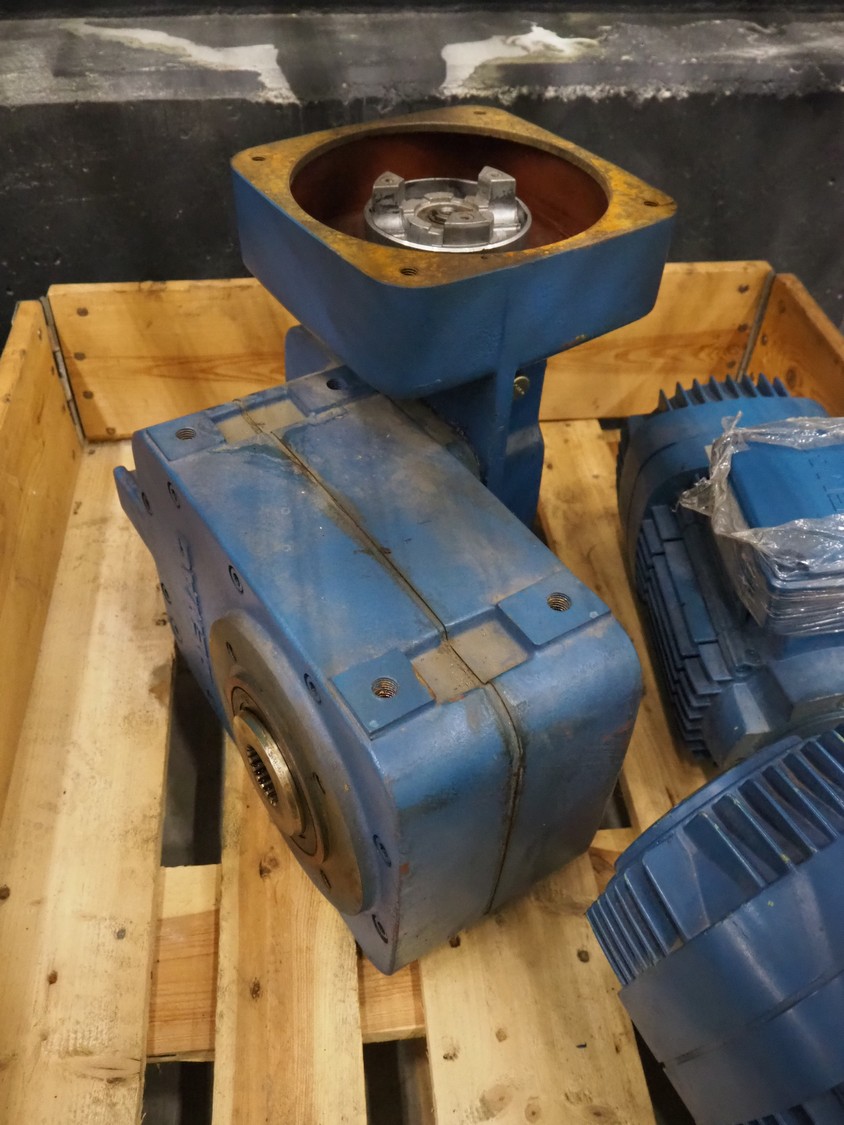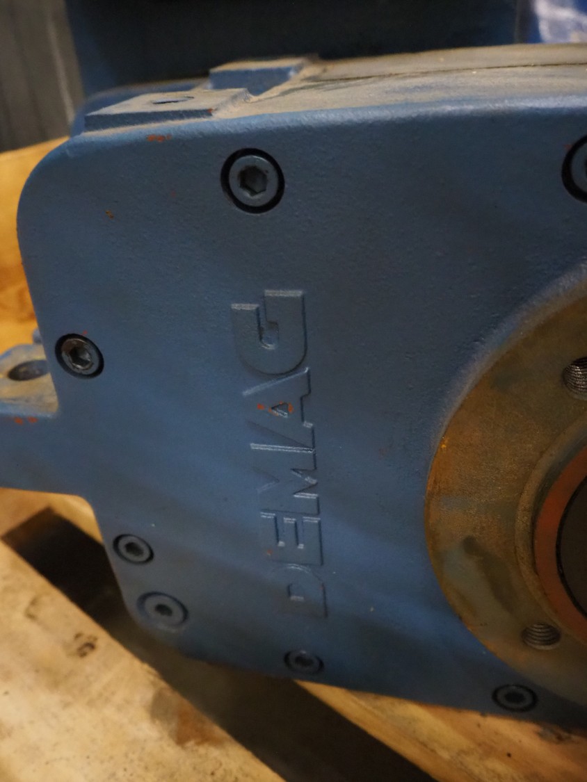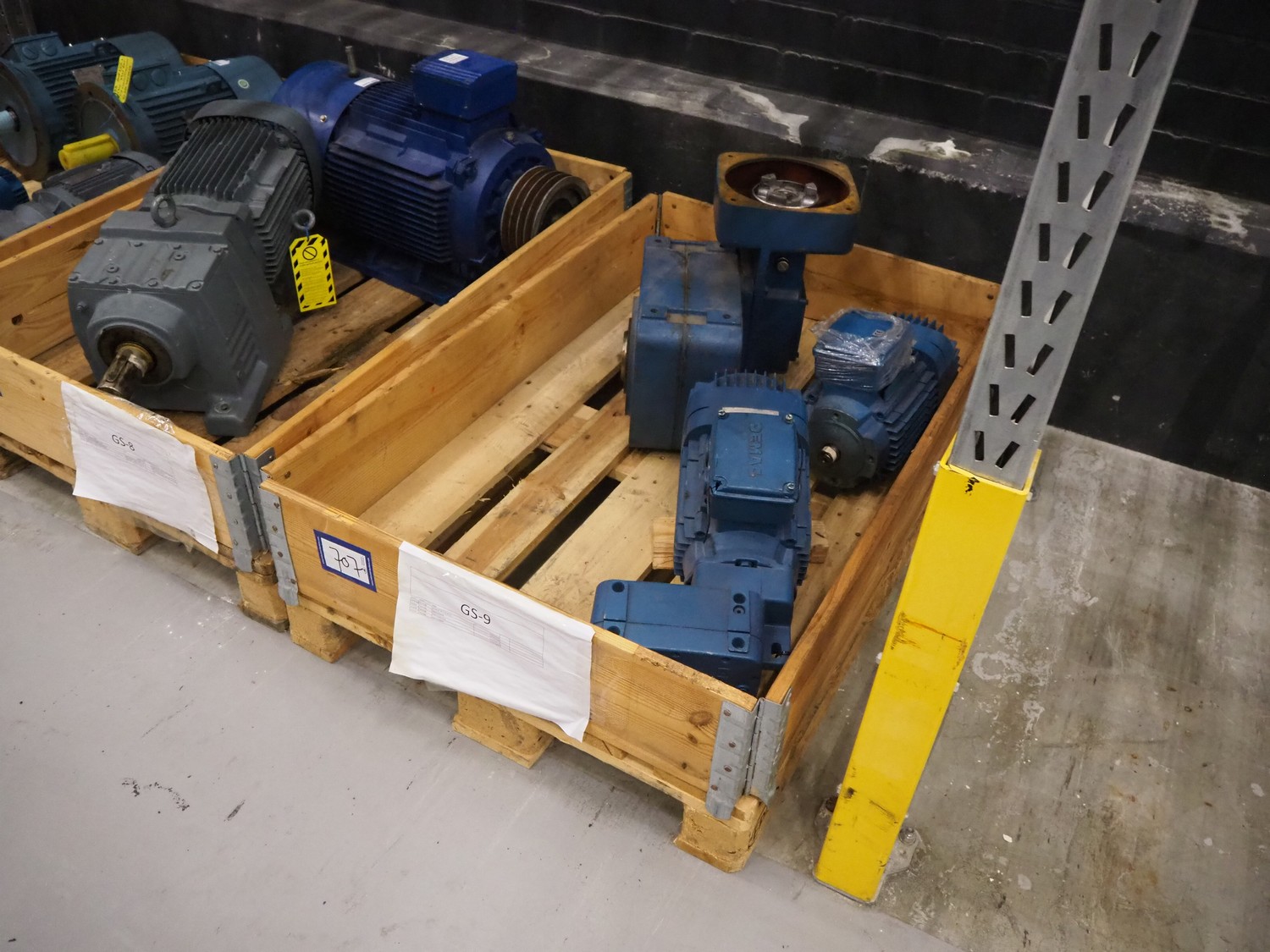 Pallet with 2 Demag motors and 2 gearboxes, type motors: (1x) KBA100B 4 R, 230/400 V, 3 Ph, 50 Hz, 3/1.75 A, 0.75 kW, (1x) KBA 100 B 12/4, 380 V, 3 Ph, 50 Hz, 5.5 A, 0.28/1.6 kW.