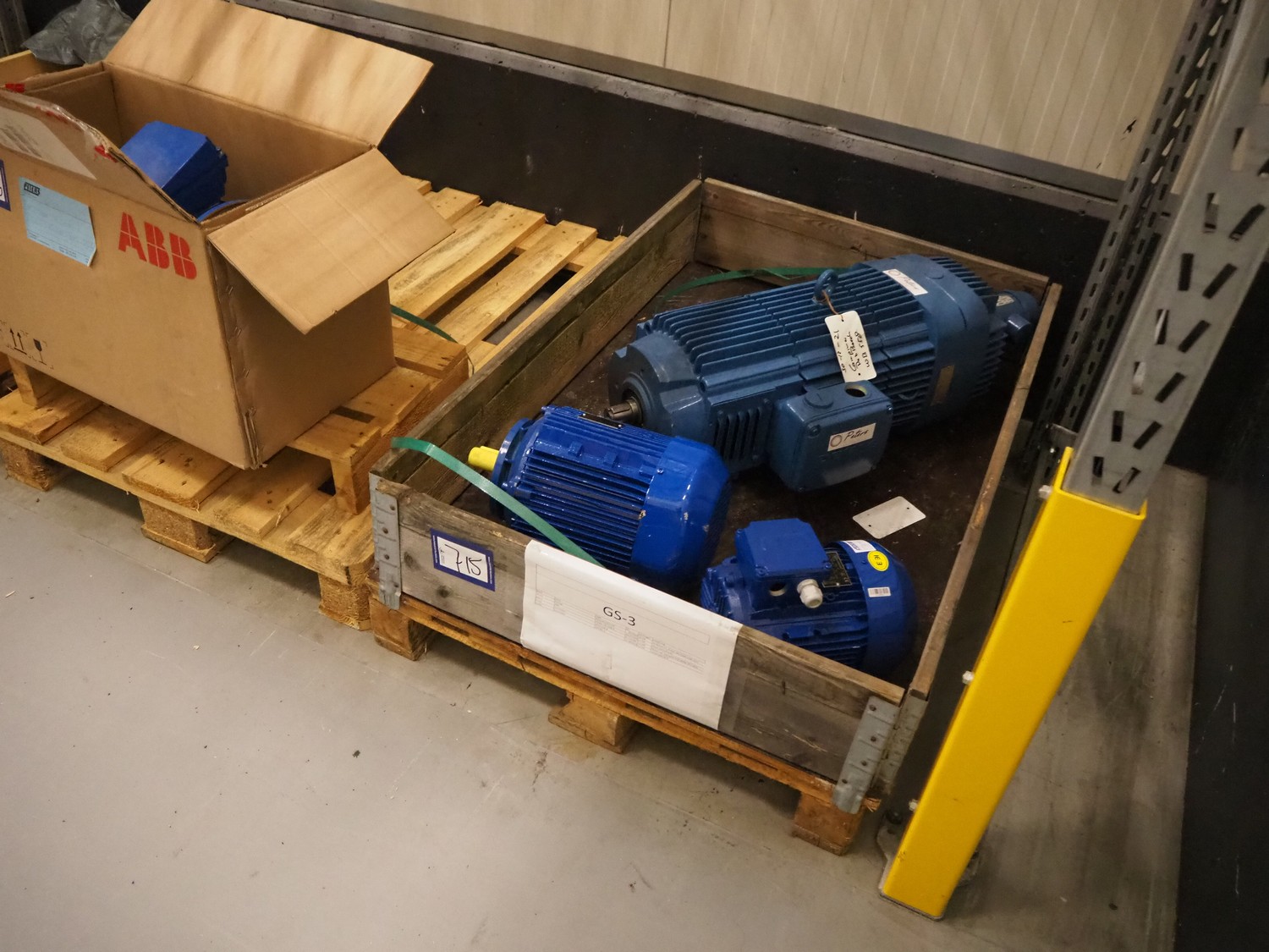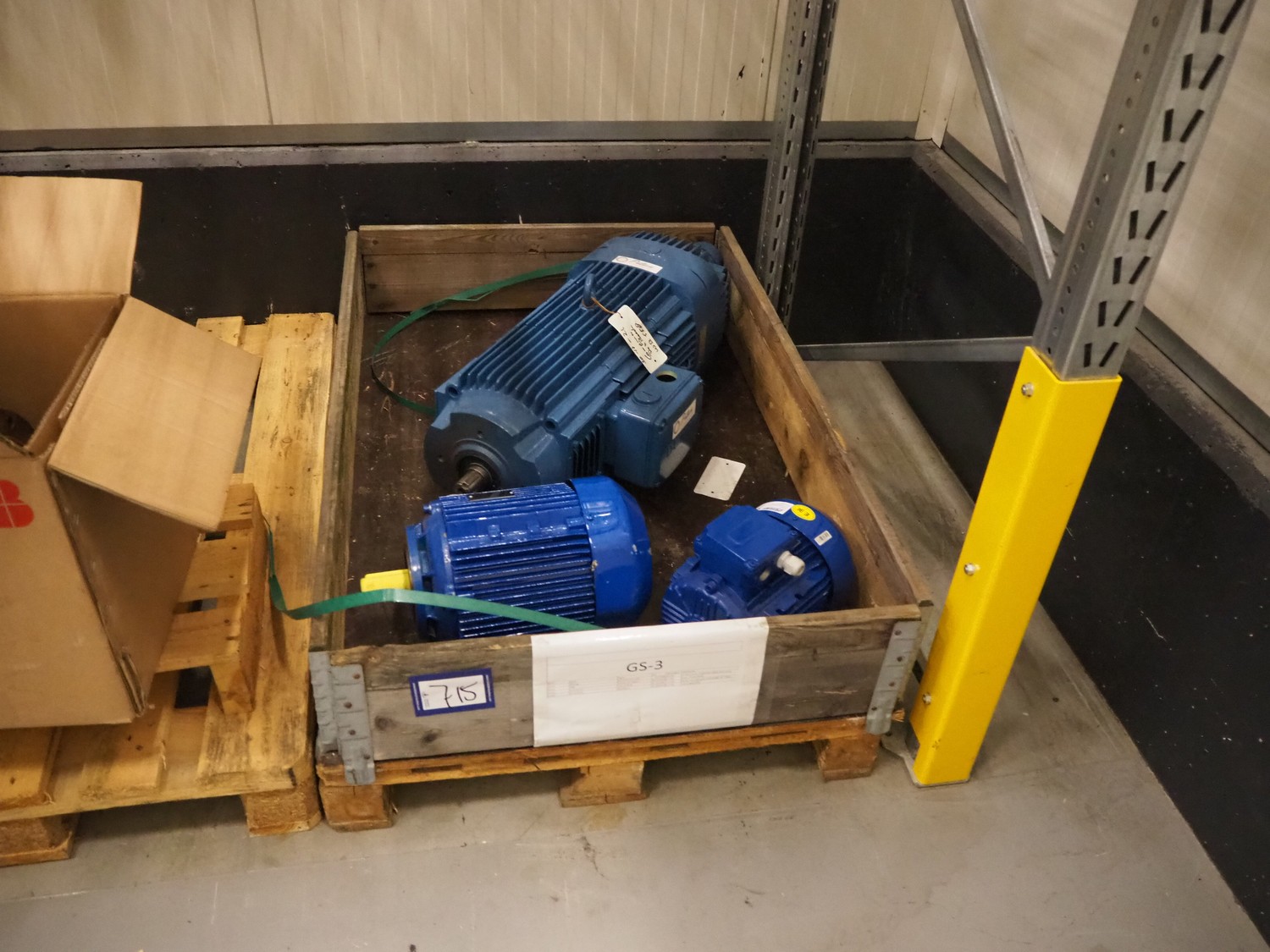 Pallet with Demag motor, type: GCH 140 D2Z1105, and 2 Euromotor motors, type: 3SIE 90L-2 and SKG 112M-8.