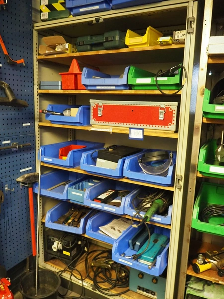 2 cabinets with large amount of tools, among other Alkitronic, Hitachi, etc dimensions: (2x) 1200 mm x 500 mm x 2100 mm.
