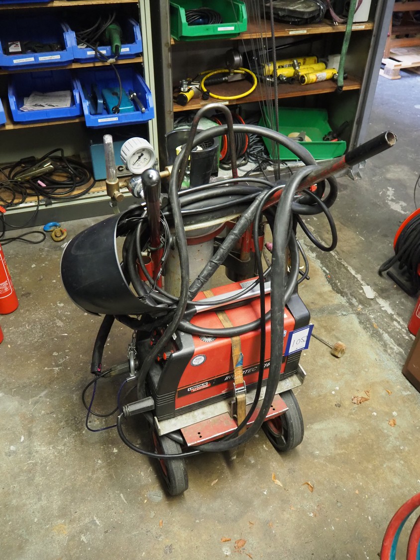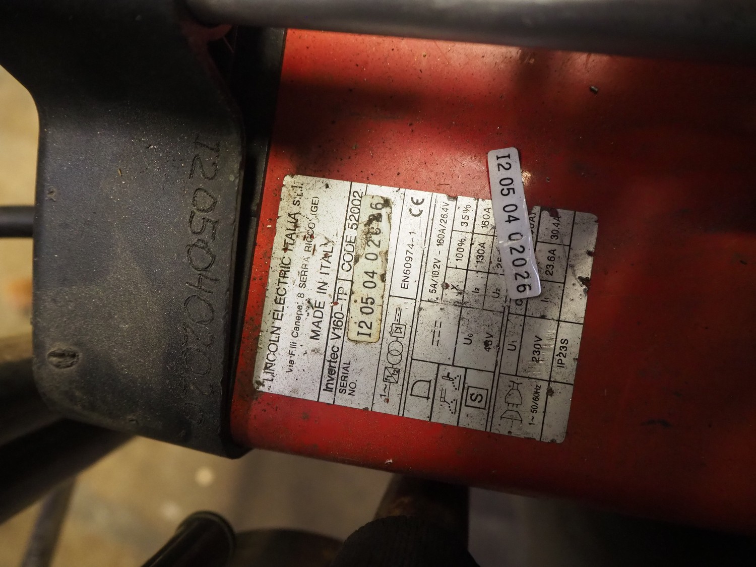 Lincoln Electric Italia s.r.l. welding machine on trolley, type: Invertec V160-TP, serial number: I2 05 04 02626, 230 V, 1 Ph, 50/60 Hz, 23.6/30.4 A, dimensions: 600 mm x 500 mm x 1100 mm.