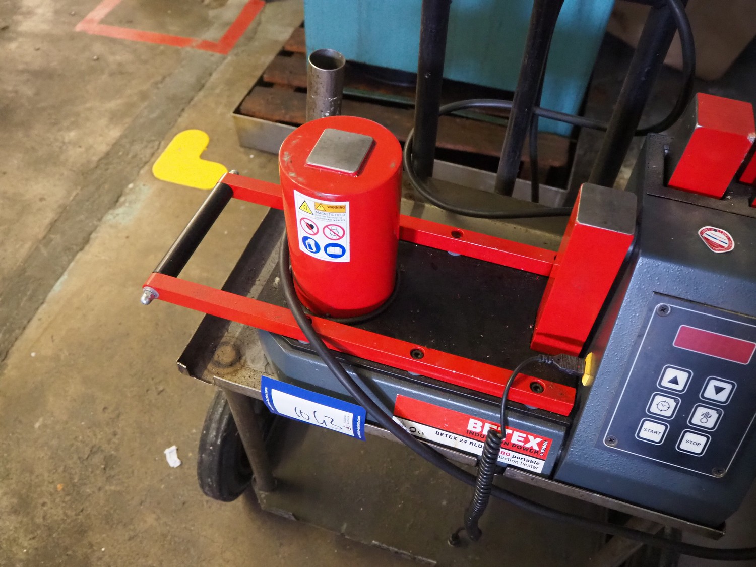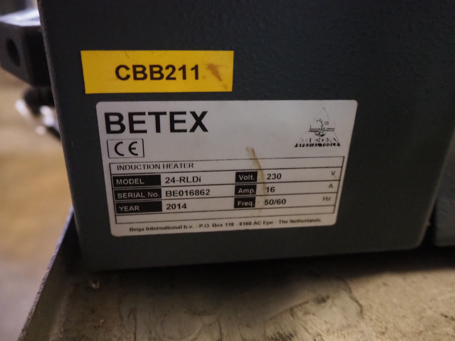 Betex portable induction heater on steel trolley, model: 24-RLDi, serial number: BE016862, year of construction: 2014, 230 V, 50/60 Hz, 16 A, dimensions: 700 mm x 450 mm x 1050 mm.