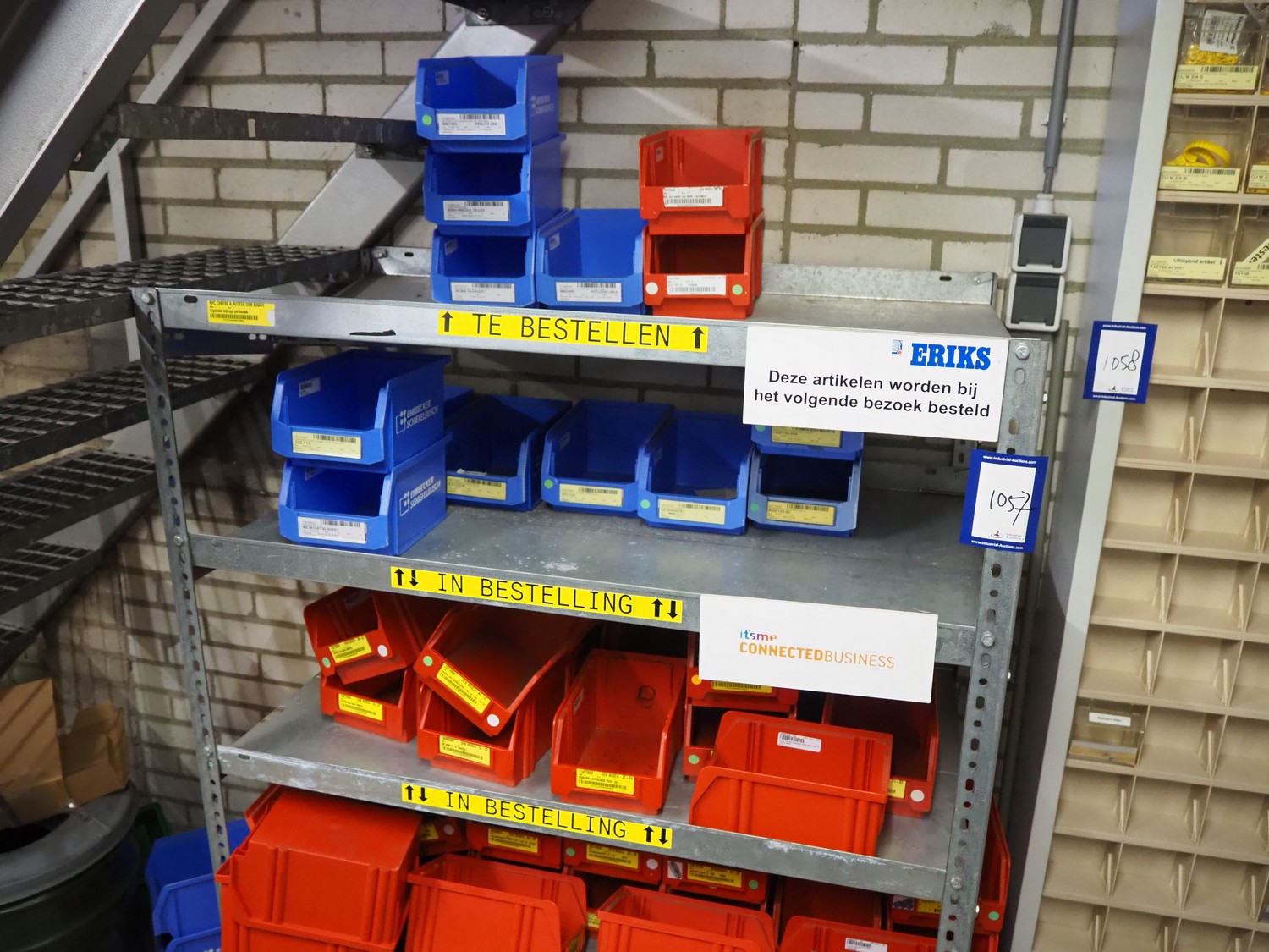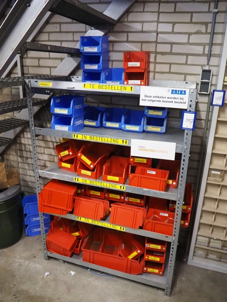 Steel rack with plastic trays, 5 floors, floor dimensions: 1000 mm x 600 mm, total dimensions: 1000 mm x 600 mm x 1400 mm.