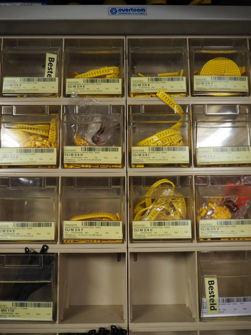 Overtoom cabinet with letter tags, dimensions: 1270 mm x 250 mm x 2000 mm.