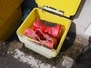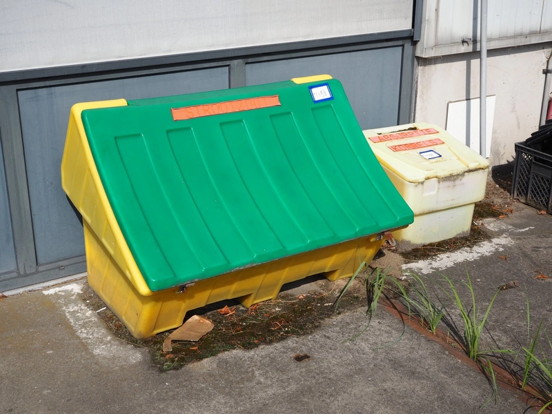 2 plastic tubs, dimensions: 1200 mm x 800 mm x 800 mm, 500 mm x 500 mm x 500 mm.