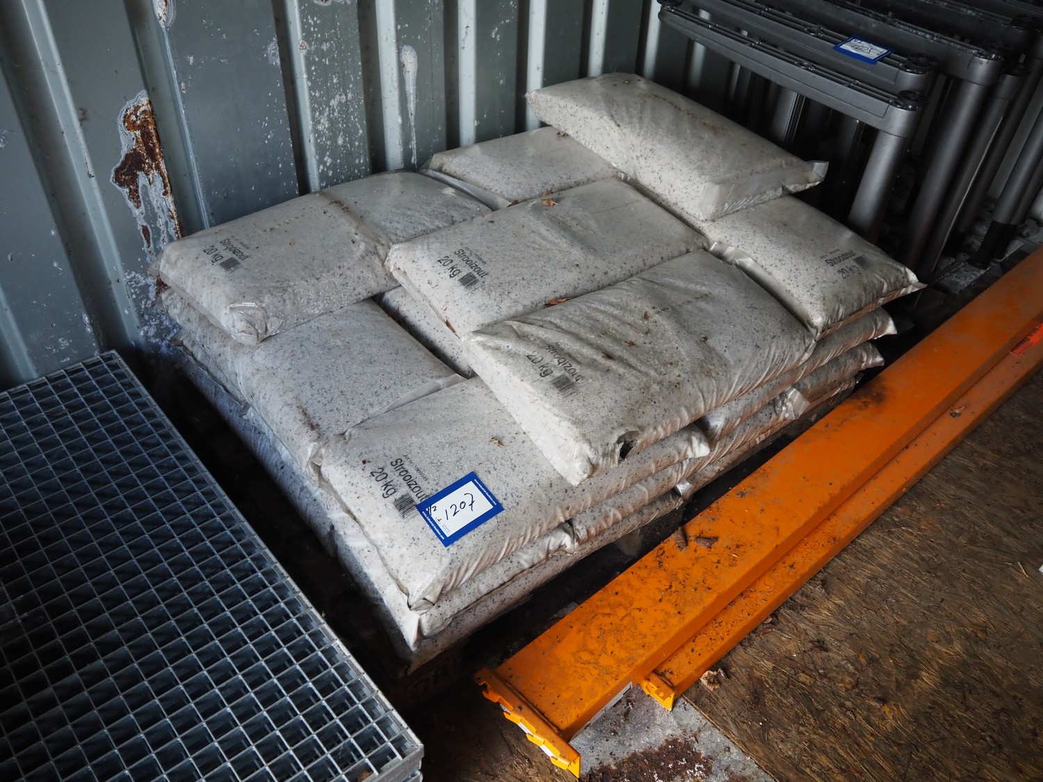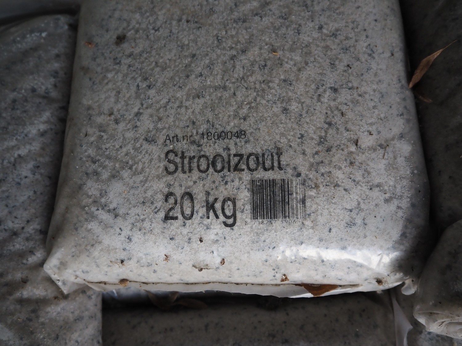 2 pallets with 47 bags of de-icing salt, 20 kg each bag, dimensions: (2x) 1200 mm x 800 mm x 600 mm.