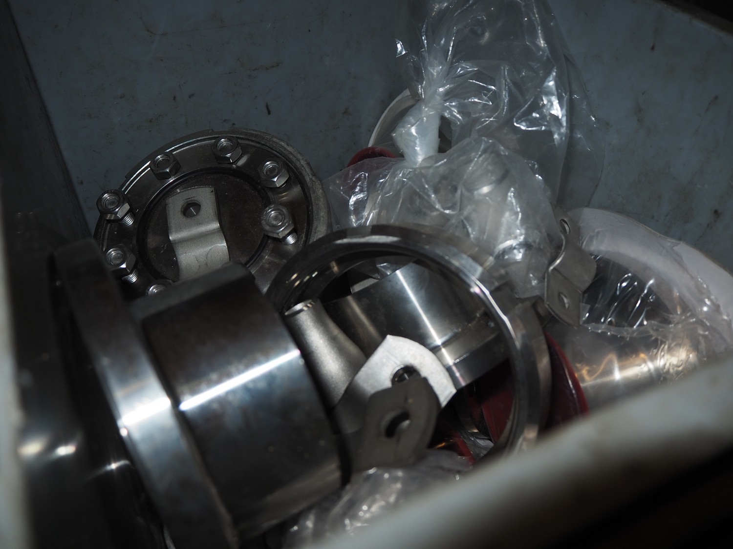 Large amount of various plumber spare parts, among others: couplings, pipe closures, pipes, etc.