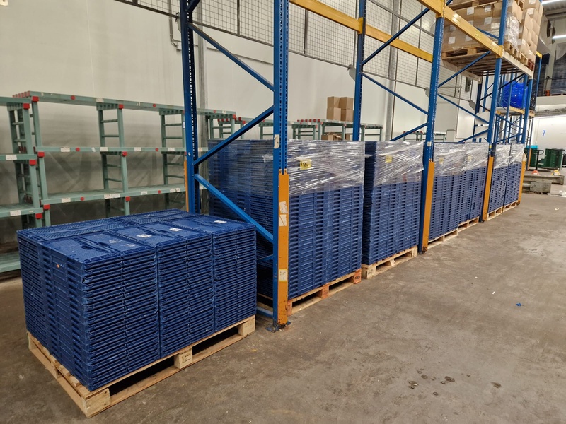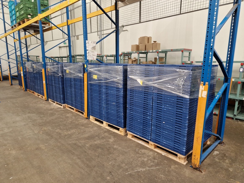 7 pallets with approximately 1100 plastic foldable crates, dimensions each crate: 600 mm x 400 mm x 200 mm.