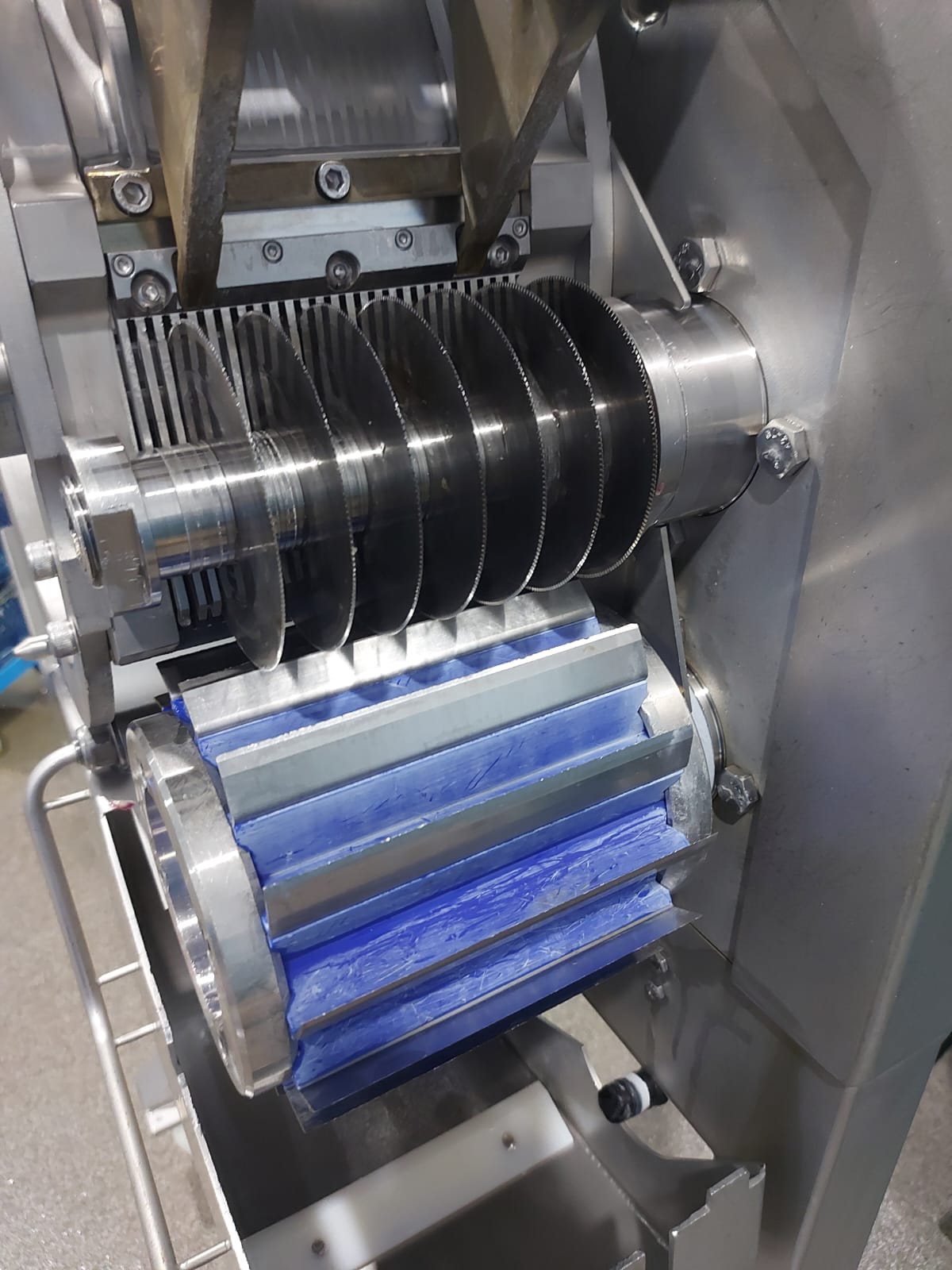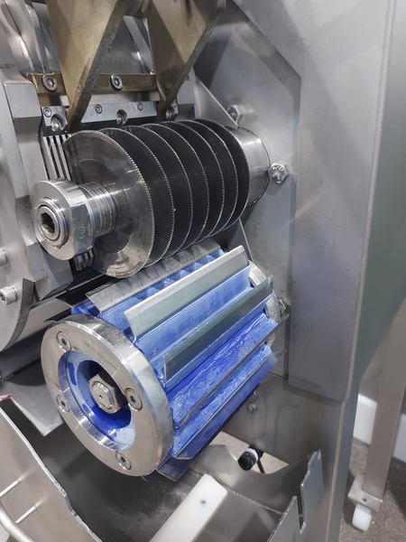 FAM mobile slicer, type: Dorphy, number: 11201, year of construction: 2017, 400 V, 3 Ph, 50 Hz, 5 A, 1.5 kW, weight: 300 kg, dimensions infeed: 450 mm x 340 mm, distance between knives: 20 mm, total dimensions: 1500 mm x 950 mm x 1800 mm.
