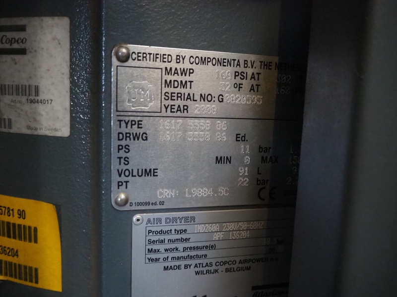 Atlas Copco air compressor, type: ZT 55 FF, serial number: APF.136194, year of construction: 2008, 56 kW, 2960 r/min, 8.35 bar, dimensions: 2900 mm x 1450 mm x 2200 mm.