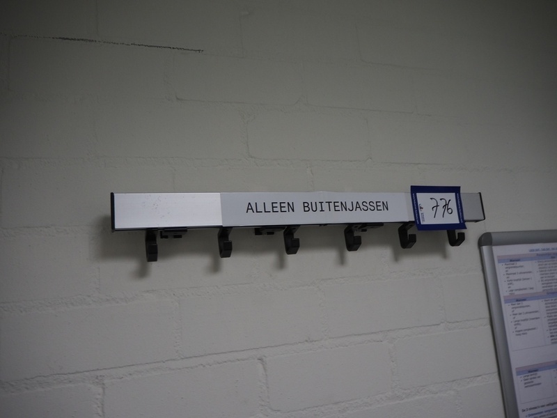 Steel coat rack, dimensions: 600 mm x 60 mm x 100 mm.