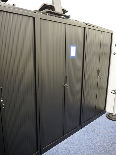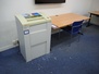 Office inventory consisting of: 6 desks, dimensions: (6x) 1800 mm x 900 mm x mm, 1 table, dimensions: Ø 800 mm x 740 mm, 4 cabinets, dimensions: (4x) 1000 mm x 440 mm x 2000 mm, Intimus and Fellowes shredder, dimensions: 660 mm x 450 mm x 1050 mm, 300 mm x 550 mm x 550 mm. Without computer equipment.