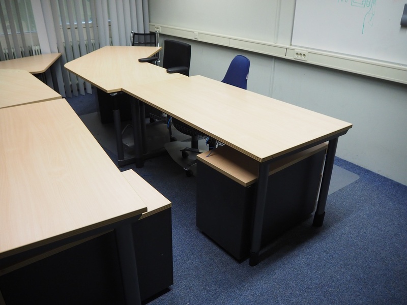 Office inventory consisting of: 6 desks, dimensions: (2x) 1600 mm x 800 mm x 760 mm, (2x) 2100 mm x 1500 mm x 760 mm, 1600 mm x 1000 mm x 700 mm, 1800 mm x 800 mm x 650 mm, 7 chairs, dimensions: (7x) 550 mm x 550 mm x 950 mm, 4 cabinets, dimensions: (4x) 1200 mm x 450 mm x 1950 mm, 2 white boards. Without computer equipment.