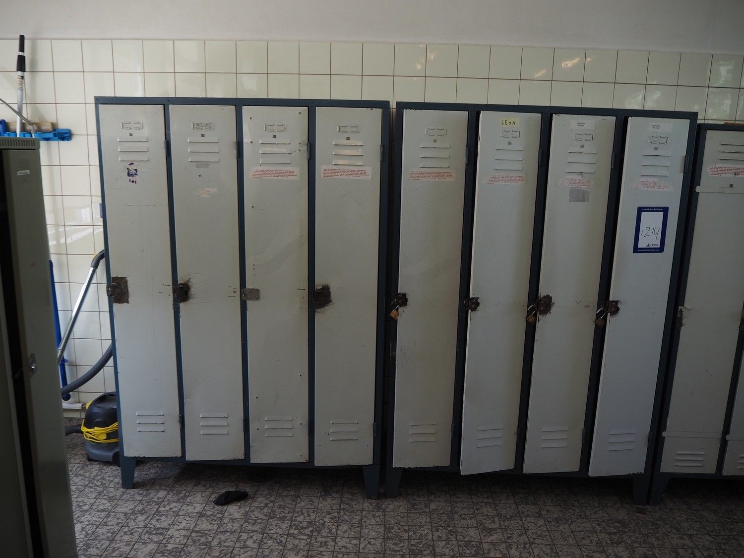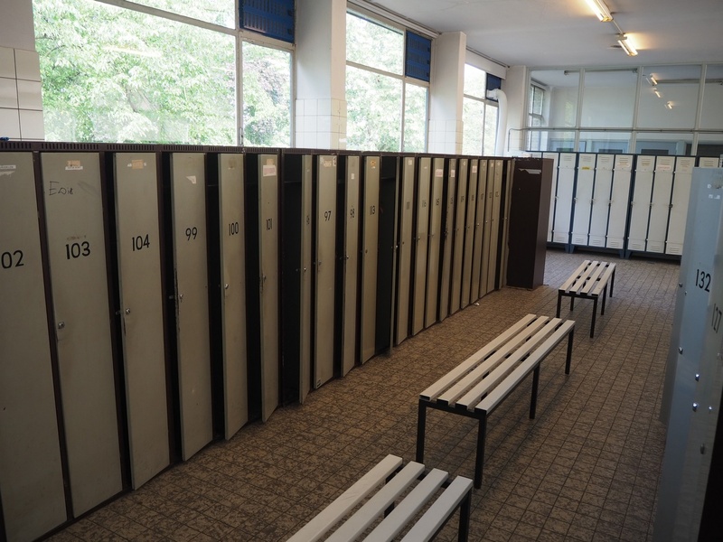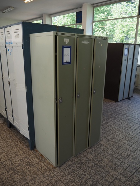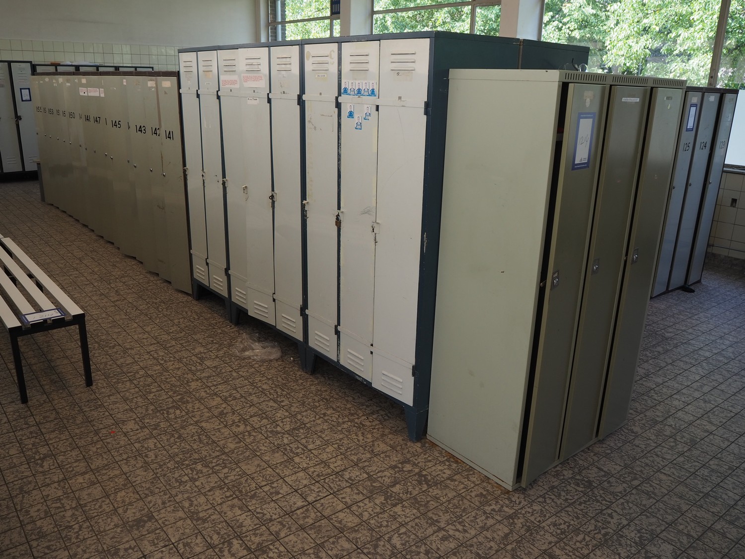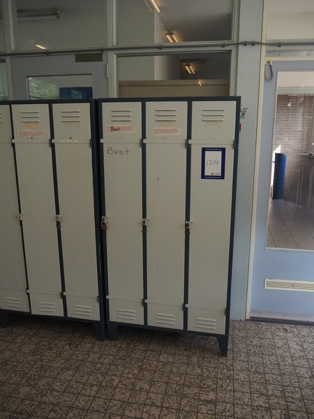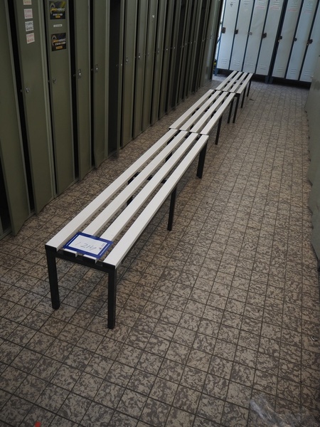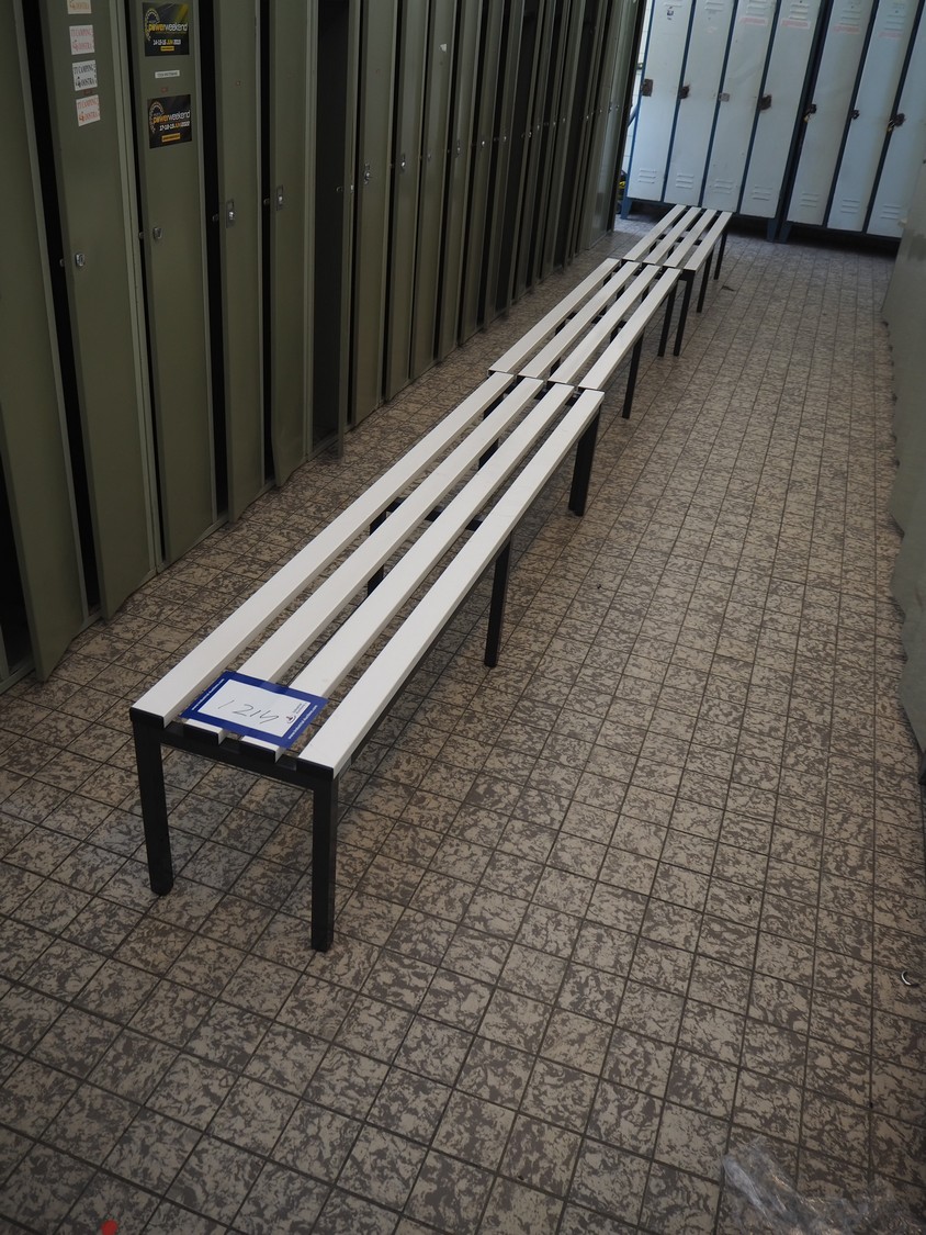 44 steel lockers and 6 benches, locker dimensions: (10x) 900 mm x 500 mm x 1750 mm, (30x) 900 mm x 500 mm x 1620 mm, (4x) 600 mm x 500 mm x 1750 mm, bench dimensions: (6x) 1950 mm x 750 mm x 420 mm.