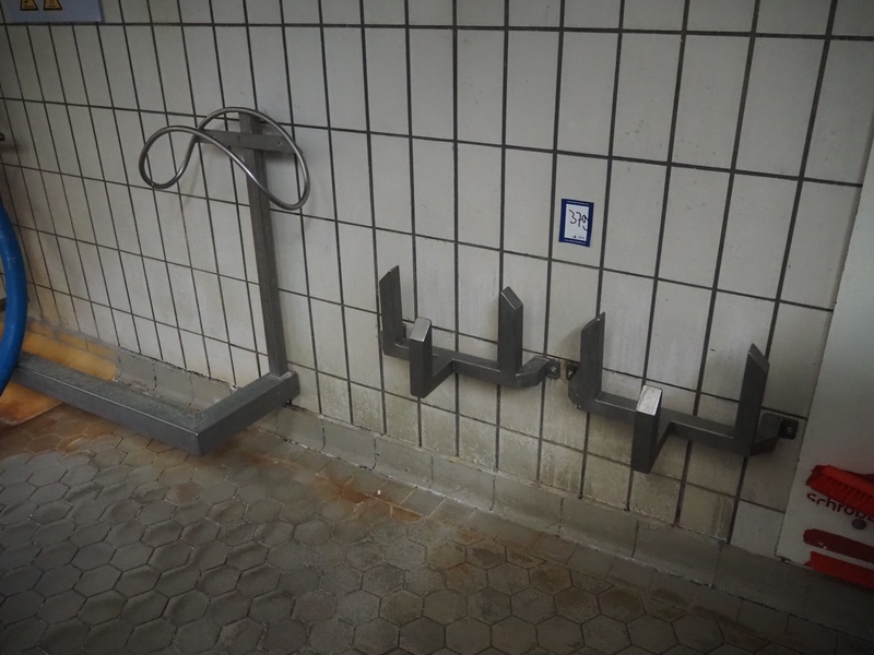 S/s hose reels and 2 s/s wall mounted frames, hose reel dimensions: 450 mm x 200 mm x 800 mm, frame dimensions: (2x) 520 mm x 260 mm x 250 mm.