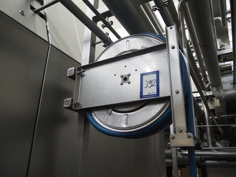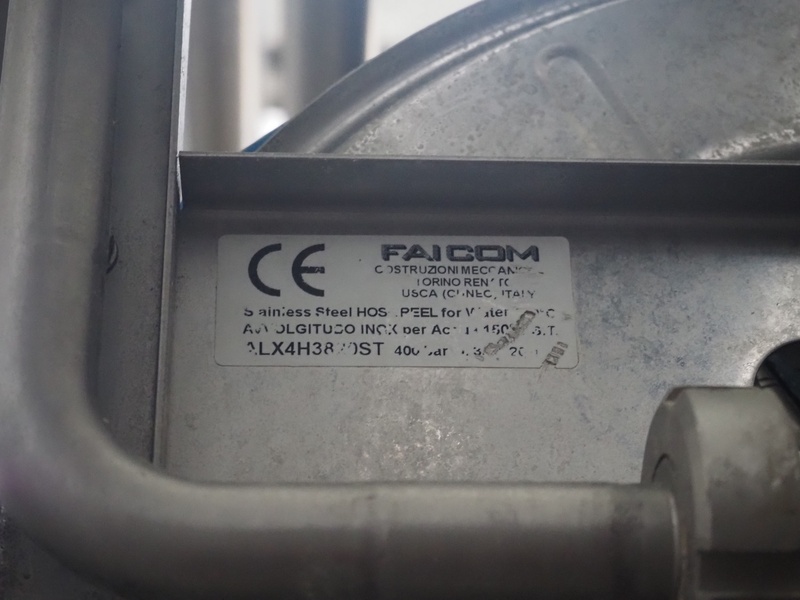 FAICOM s/s hose reel with plastic hose and spray pistol, dimensions: 500 mm x 250 mm x 500 mm.
