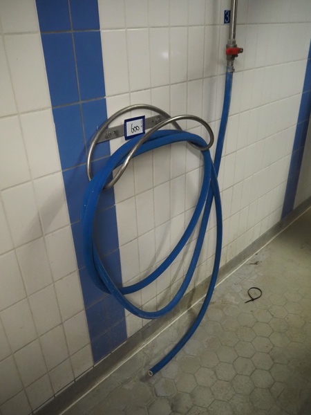 S/s hose reel with plastic hose, dimensions hose reel: 500 mm x 220 mm x 250 mm.