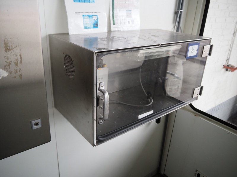 Wall mounted s/s cabinet, dimensions: 800 mm x 440 mm x 380 mm.