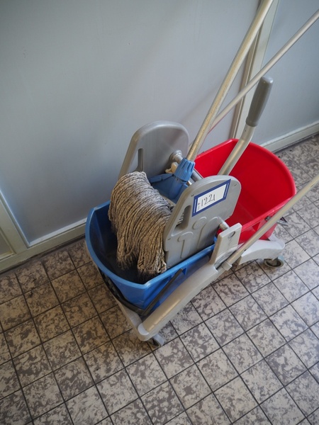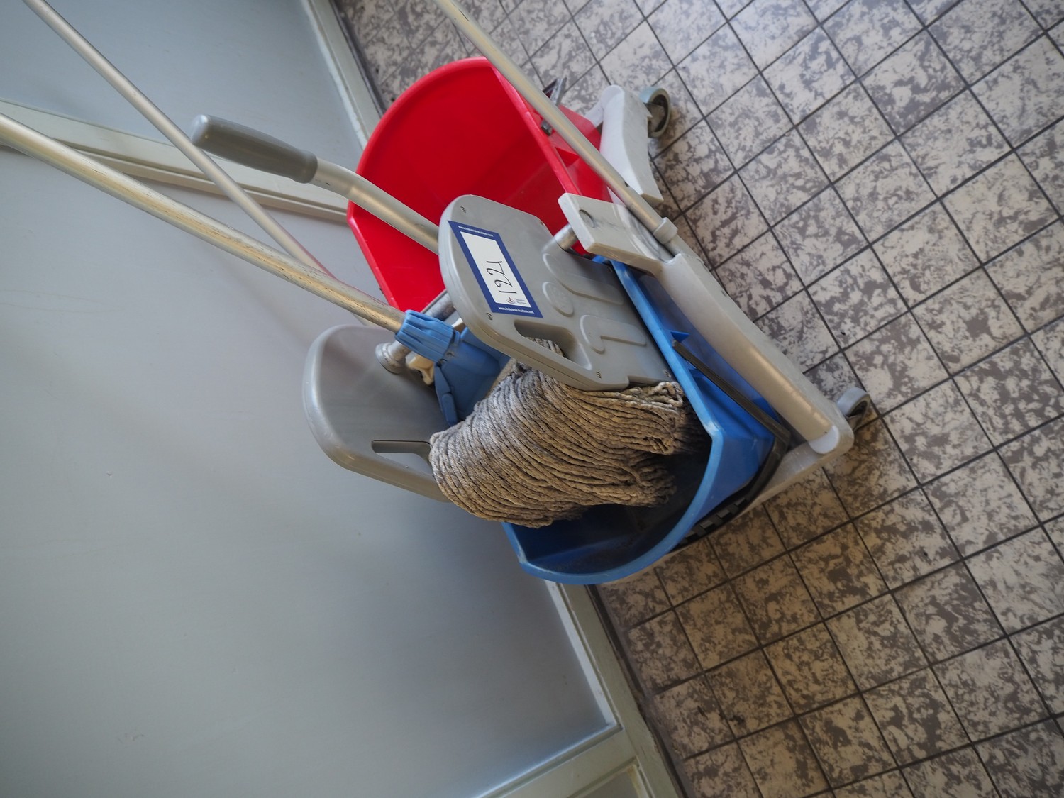 Cleaning trolley, dimensions: 1000 mm x 400 mm x 900 mm.