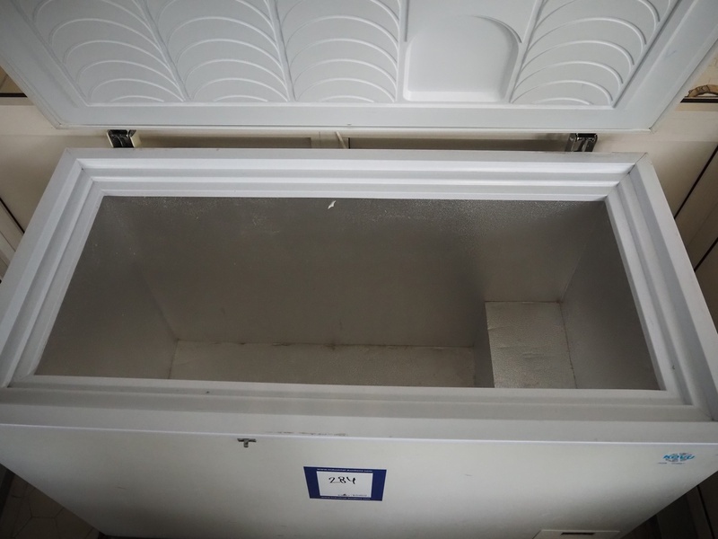 Kovu chest freezer, type: UNI31/EL31LT, number: 09220376, 220-240 V, 50 Hz, 360 W, refrigerant: R404A/200 gram, dimensions: 1310 mm x 700 mm x 1060 mm.