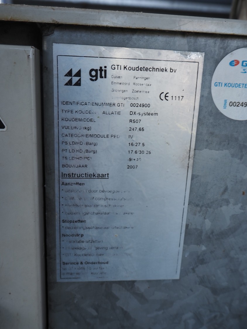 Frigotronic chiller, type: HZB-WU-CSH 8561 ECO, number: 0024900, year of construction: 08/2007, 230/400 V, 3 Ph, 50 Hz, 93.75 kW, weight: 2.742 kg, refrigerant: R507/247.65 kg, dimensions: 2500 mm x 1500 mm x 1550 mm.
