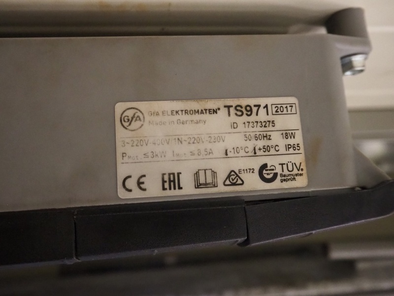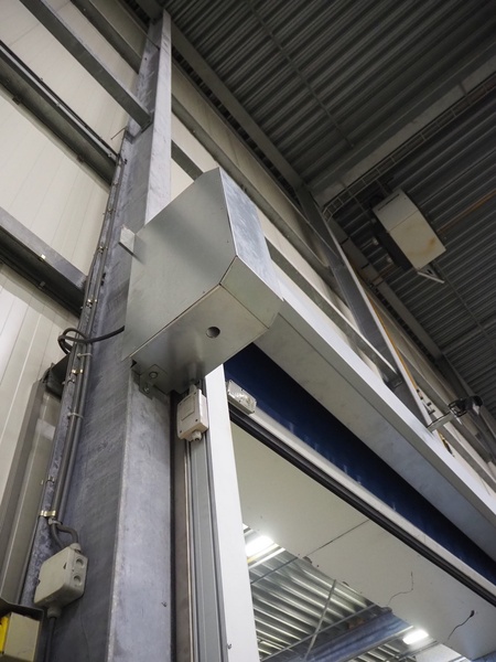ITW high speed shutter door, type: Schnellauf-Roll or Minirapid, serial number: FA1703177, year of construction: 2018, clearance: 3400 mm x 3400 mm, total dimensions: 3800 mm x 300 mm x 3850 mm, dimensions control panel: 200 mm x 100 mm x 400 mm.