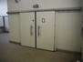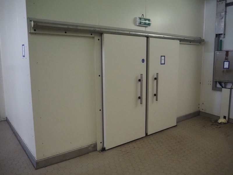 Cool it double refrigeration sliding door with rail, type: ZSI-8B, fabrication number: 04 023112 001 01, year of construction: 08.03.2004, dimensions door: (2x) 1050 mm x 2150 mm, thickness: 80 mm, length rail: 4500 mm.
