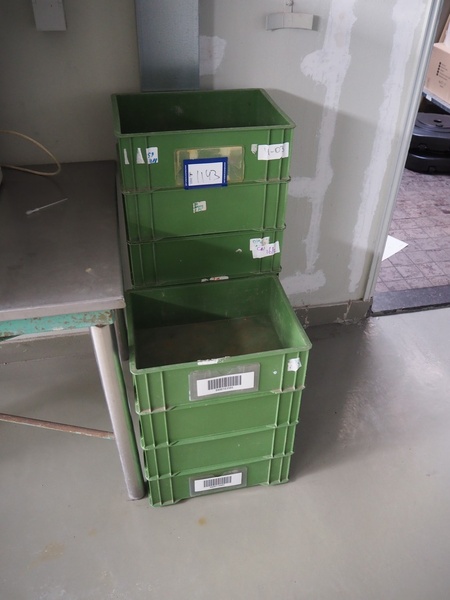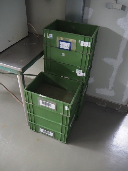 11 plastic crates, dimensions: (11x) 400 mm x 300 mm x 130 mm.