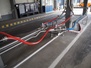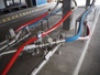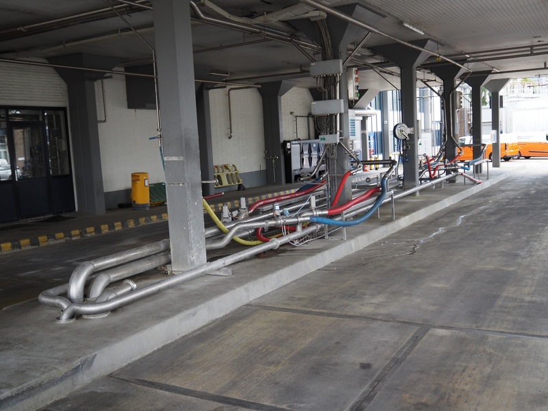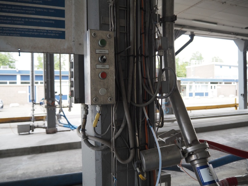 Raw milk unloading station for 4 trucks, with various hoses, s/s pipes, switch cabinets and valves, total dimensions: 16000 mm x 1800 mm x 1700 mm.