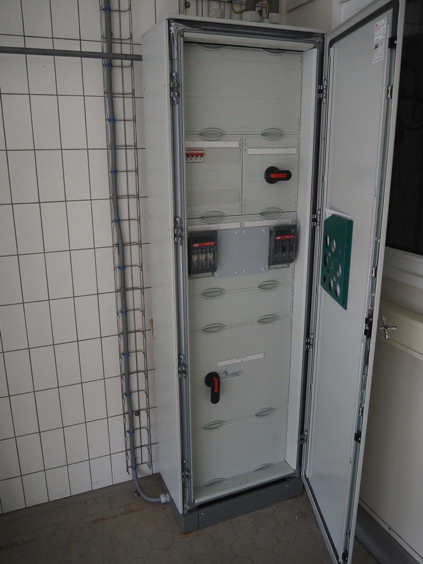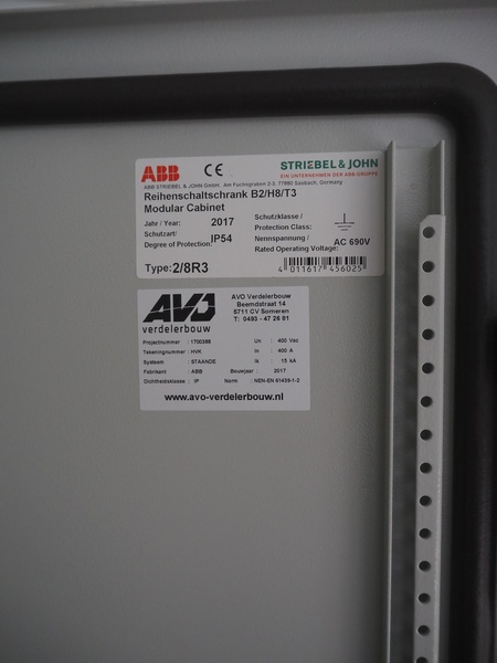 ABB STIEBEL & JOHN GmbH switch cabinet dimensions: 640 mm x 340 mm x 2050 mm.