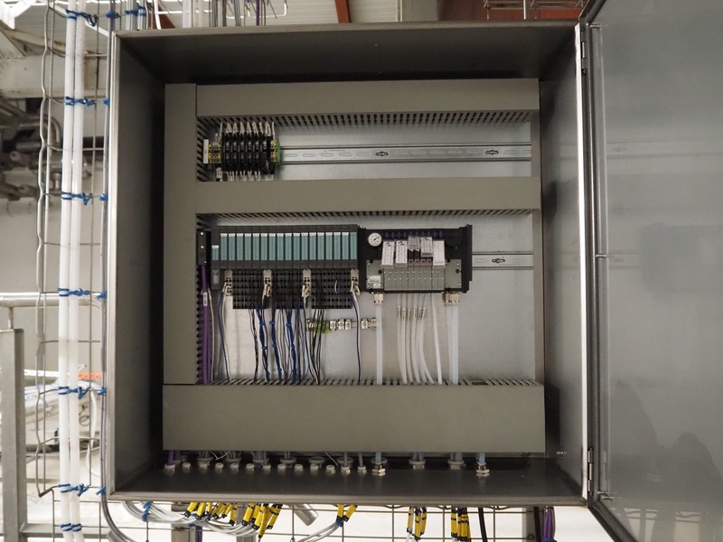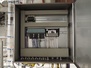 2 s/s switch cabinets on s/s frame, dimensions: 750 mm x 350 mm x 750 mm and 595 mm x 210 mm x 595 mm, total dimensions with frame: 1400 mm x 350 mm x 1100 mm.