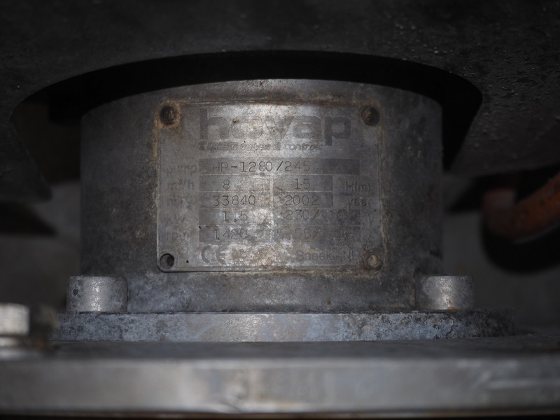 Hovap centrifugal pump, type: HP-1280/245, number: 33840, year of construction: 2002, 230/400 V, 1.5 kW, capacity: 8 m³/h, dimensions: 550 mm x 350 mm x 400 mm.