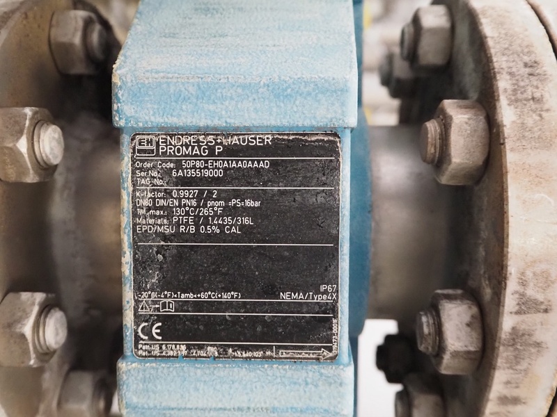 Hovap centrifugal pump, type: HP-5050/190, number: 33606, year of construction: 2002, capacity: 50 m³/h, dimensions: 900 mm x 380 mm x 560 mm. Including Endress + Hauser flowmeter, model: Promag P / Promag 50, dimensions: 400 mm x 250 mm x 200 mm.