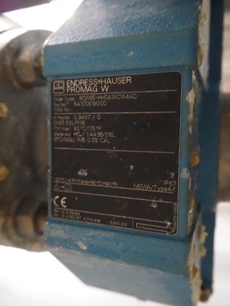 Endress + Hauser flowmeter, model: Promag W, dimensions flowmeter: 350 mm x 250 mm x 200 mm, dimensions: 250 mm x 220 mm x 200 mm.