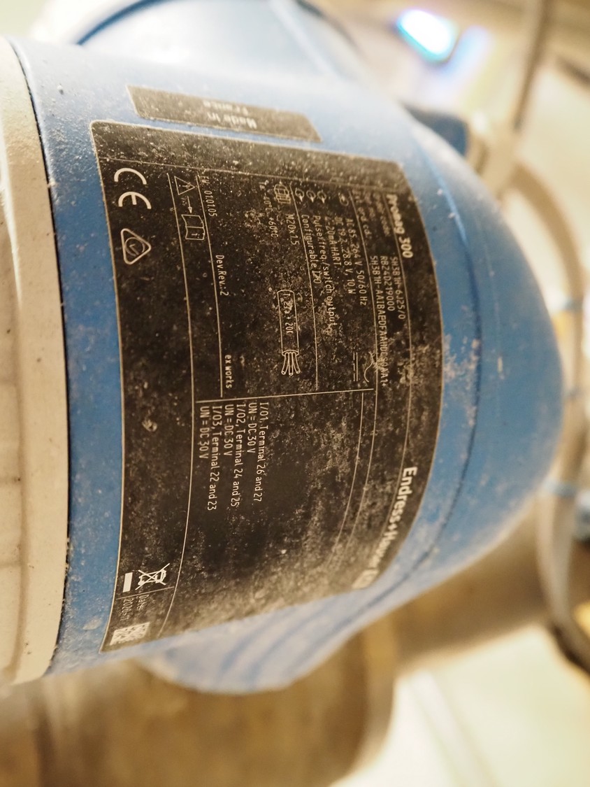 Endress + Hauser flowmeter, model: Promag H/Promag 300, dimensions: 200 mm x 250 mm x 370 mm.