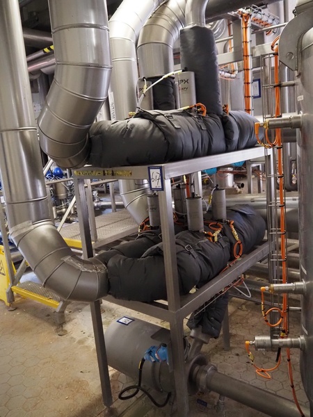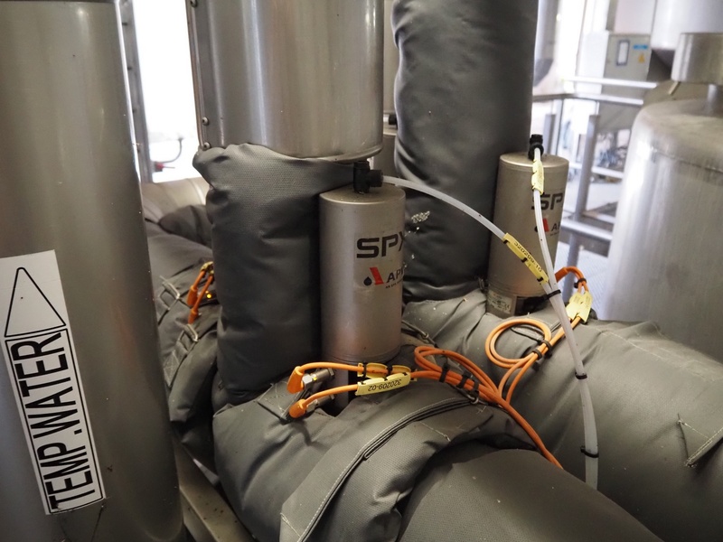 Manifold with 8 APV / SPX valves, s/s frame, dimensions: 1150 mm x 600 mm x 1900 mm.